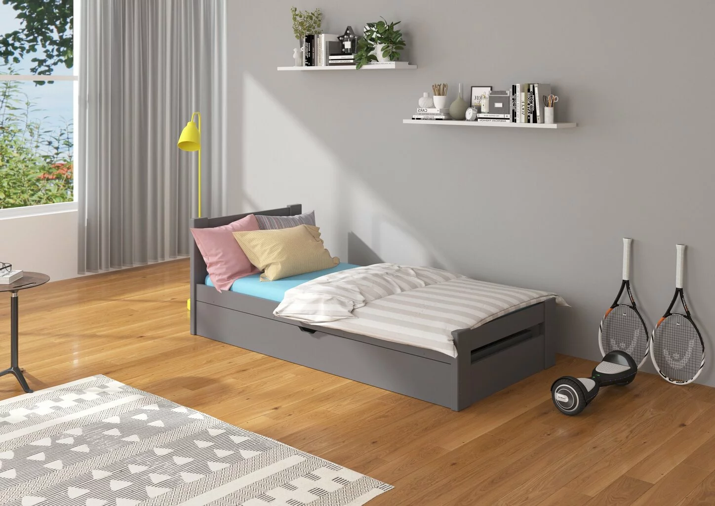 Yhden hengen sänky sänkylaatikolla, johon mahtuu leluja ja muita tavaroita vuodevaatteiden lisäksi. Minimalistinen muotoilu, kompakti sänky sopii täydellisesti minkä tahansa lastenhuoneen sisustukseen.