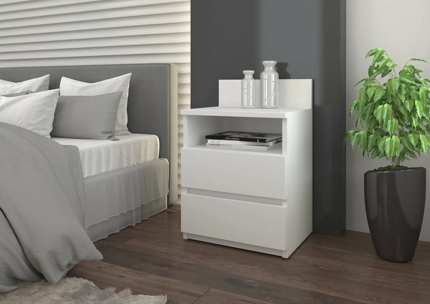 Minimalistinen sivupöytä Puna sopii täydellisesti mihin tahansa makuuhuoneen sisustukseen.