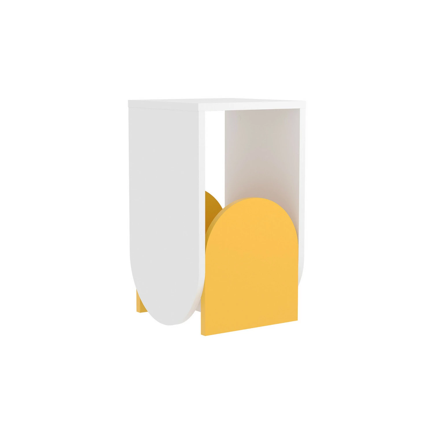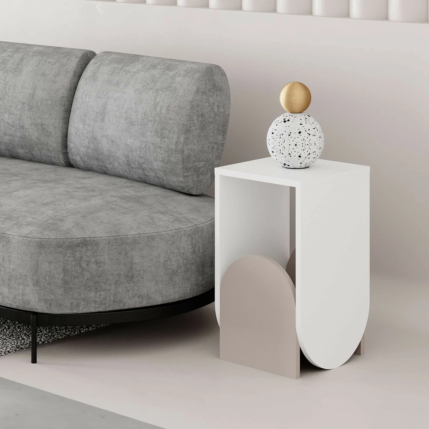 Kaunis Nun toimii apupöytänä, yöpöytänä tai vaikka kukkapöytänä. Alaosan tehosteväri luo hauskan vastinparin valkoiselle yläosalle.