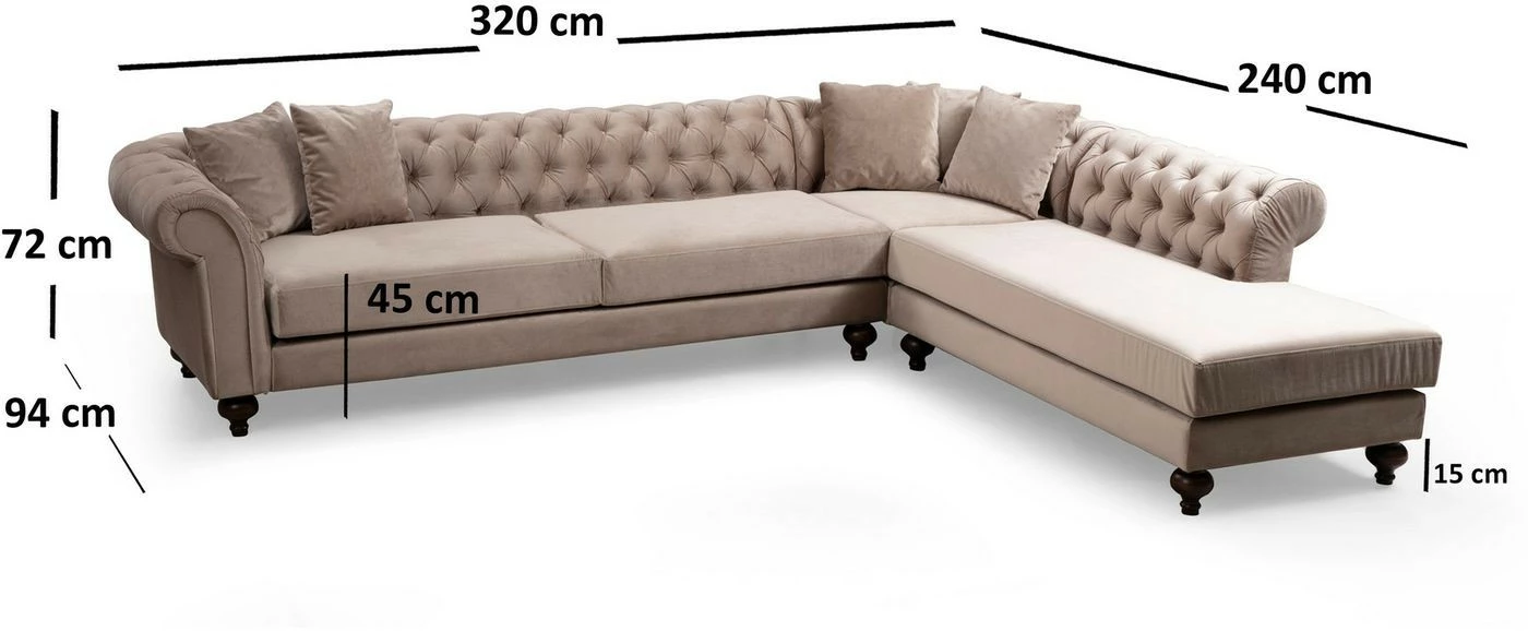 Upea Bogart-avokulmasohva kutsuu viettämään aikaa isommallakin seurueella. Tekstiiliverhoilu ja mustat puiset jalat. Lyhyempi osa on edestäpäin katsottuna oikealla puolella. Lyhyemmän osan leveys on 240 cm.