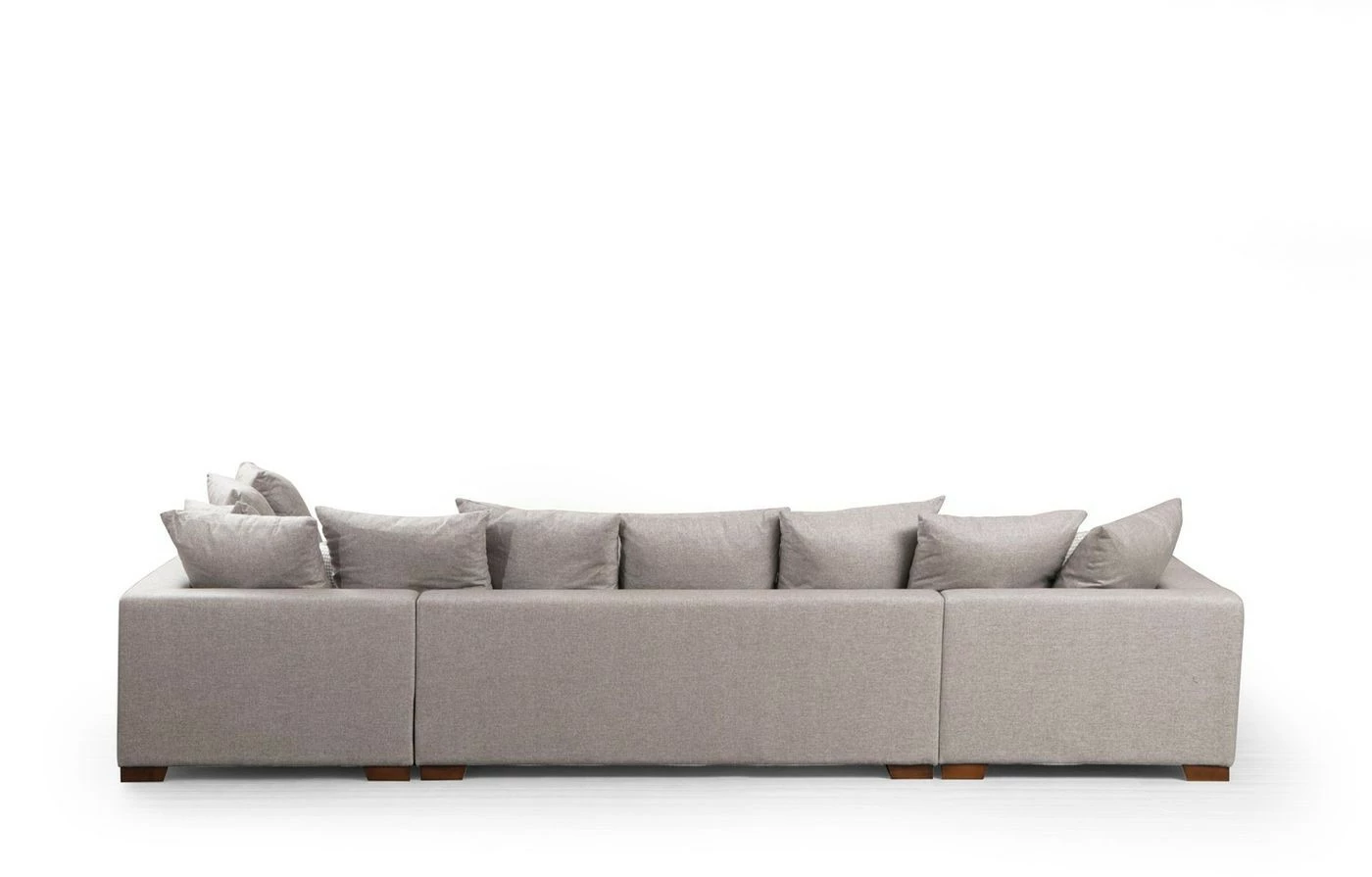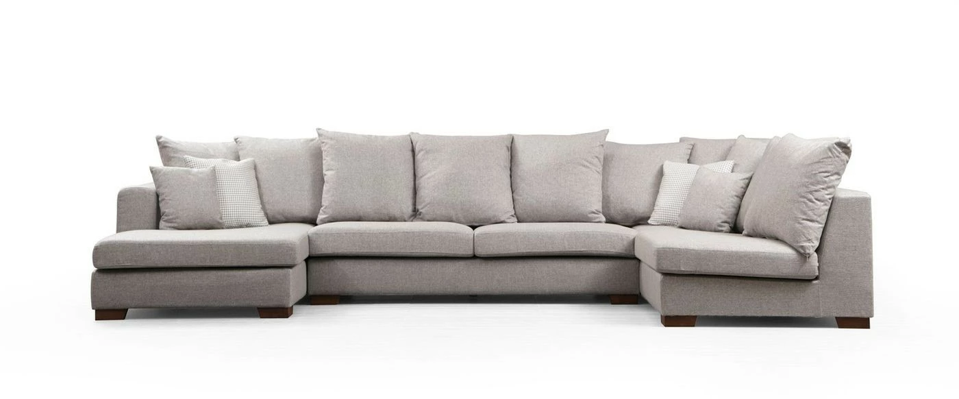 Vaalealle, beigenharmaalle Colorado-kulmasohvalle on mukava kerääntyä seurustelemaan isommallakin joukolla. Kestävä verhoilu on tekstiiliä, jalat puuta.