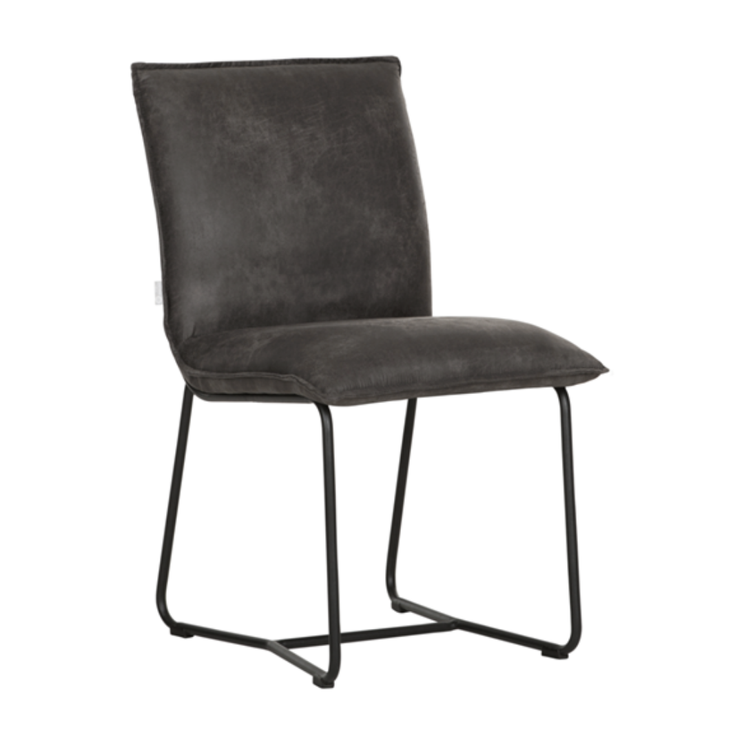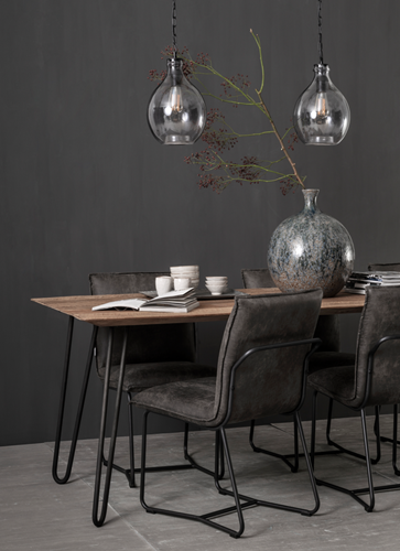 Mielenkiintoinen ja näyttävä Delaware ruokapöydän tuoli vetoaa tummanharmaalla vintage nahkapinnalla. Tuolissa on metallinen tukeva runko ja jalat sekä käytännöllinen metallikahva takana, josta on hyvä siirrellä tuolia jättämättä nahkapintaan sormenjälkiä. Kahva myös tuo tuoliin mielenkiintoa myös katsottuna takaapäin. Nahkaverhoiltu tuoli sopii moneen erilaiseen sisustukseen.