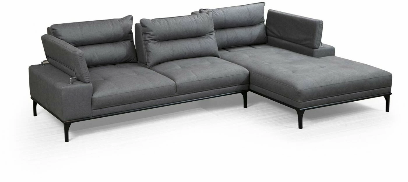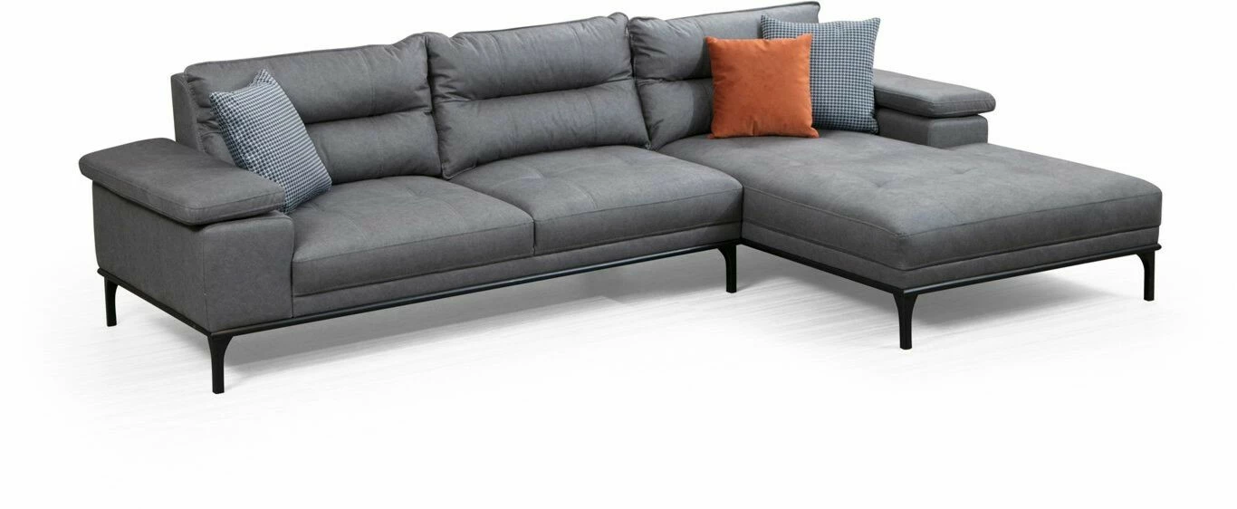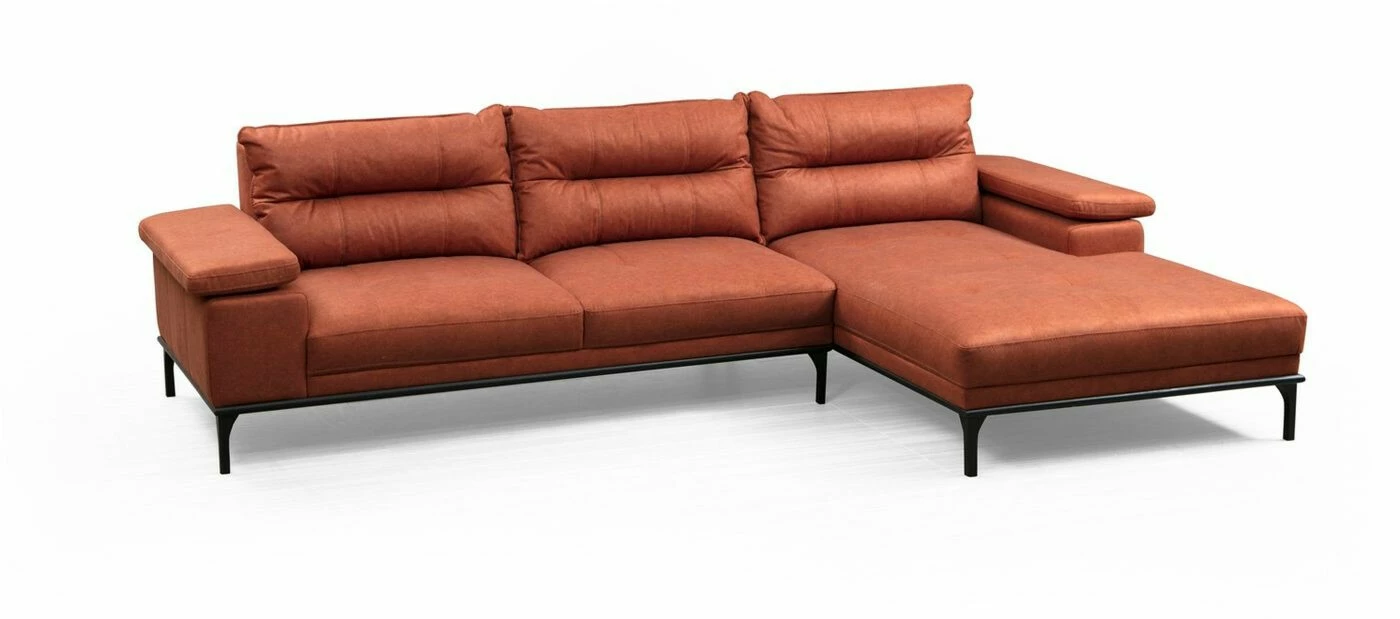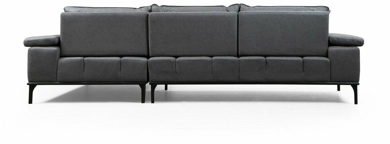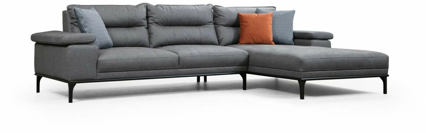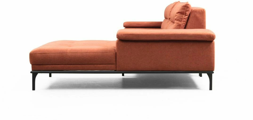 Suosittu Hollywood-sohva sopii moneen makuun. Säädettävä käsinoja lisää löhöilymukavuutta. Mattamustat jalat ovat metallia. Divaaniosa on edestäpäin katsottuna oikealla puolella.