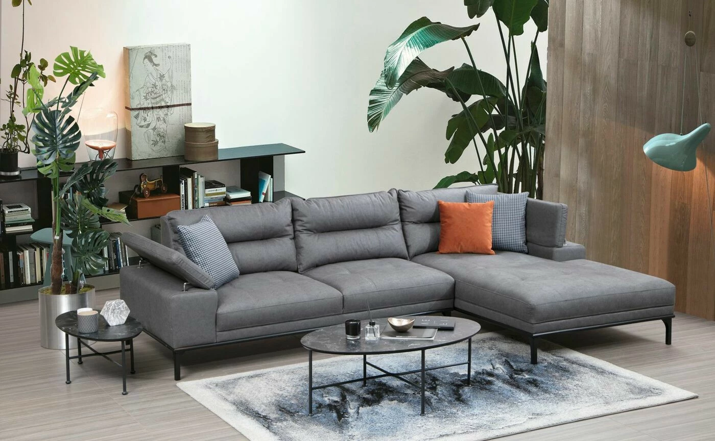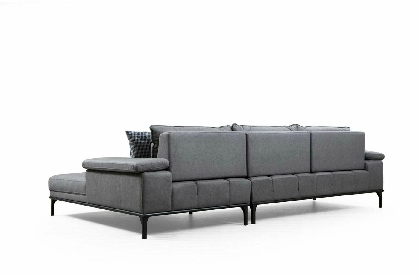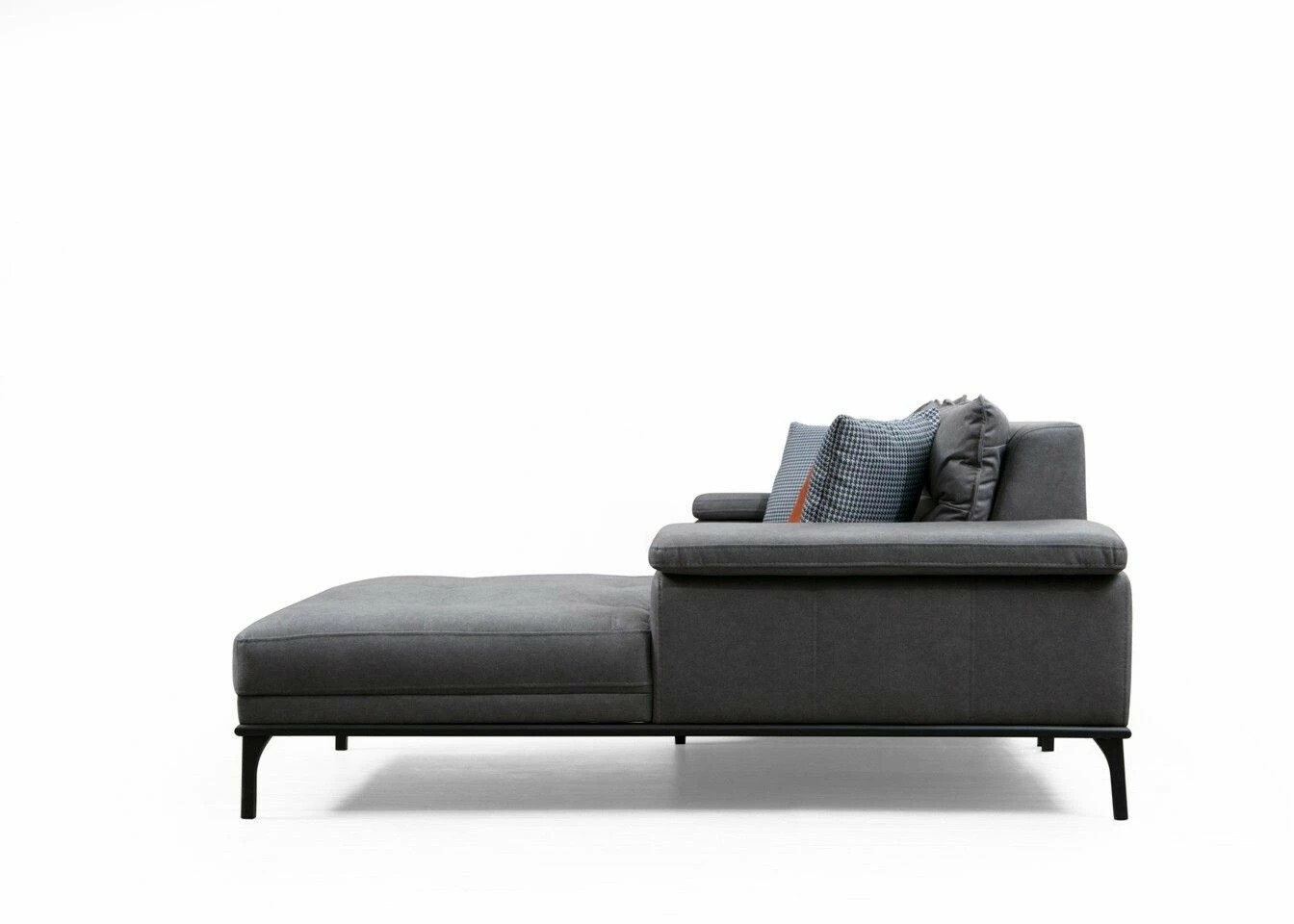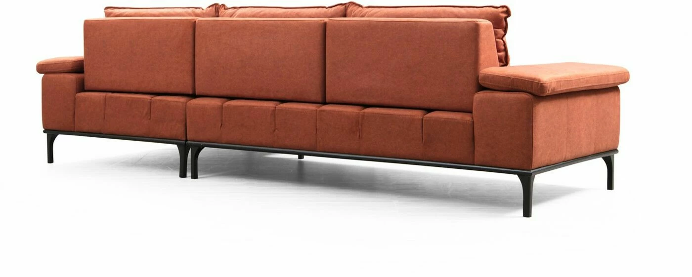 Suosittu Hollywood-sohva sopii moneen makuun. Säädettävä käsinoja lisää löhöilymukavuutta. Mattamustat jalat ovat metallia. Divaaniosa on edestäpäin katsottuna oikealla puolella.