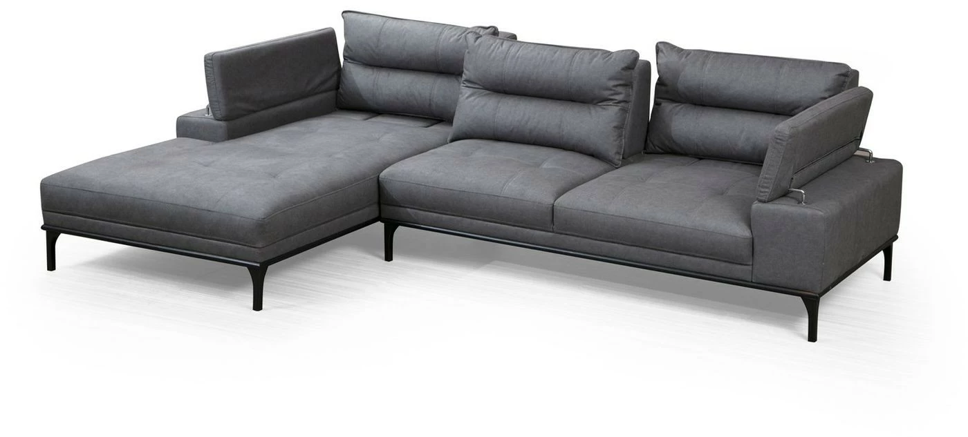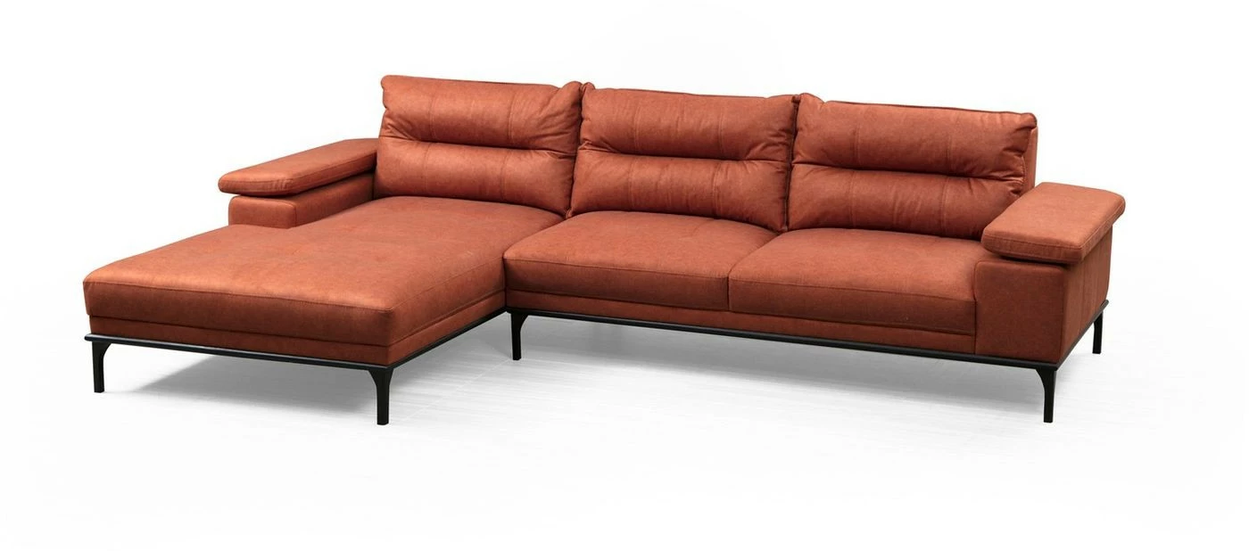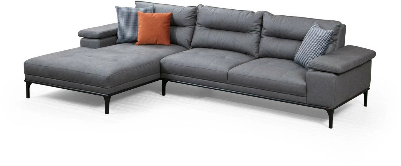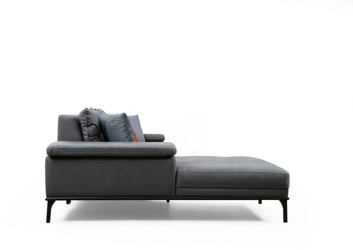 Suosittu Hollywood-sohva sopii moneen makuun. Säädettävä käsinoja lisää löhöilymukavuutta. Mattamustat jalat ovat metallia. Divaaniosa on edestäpäin katsottuna vasemmalla puolella.