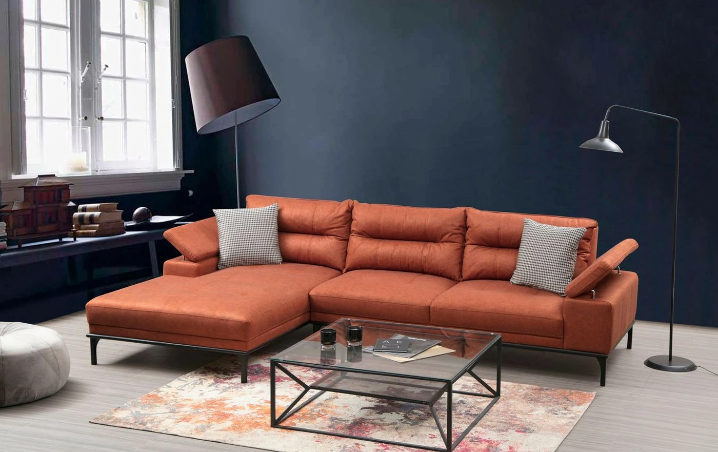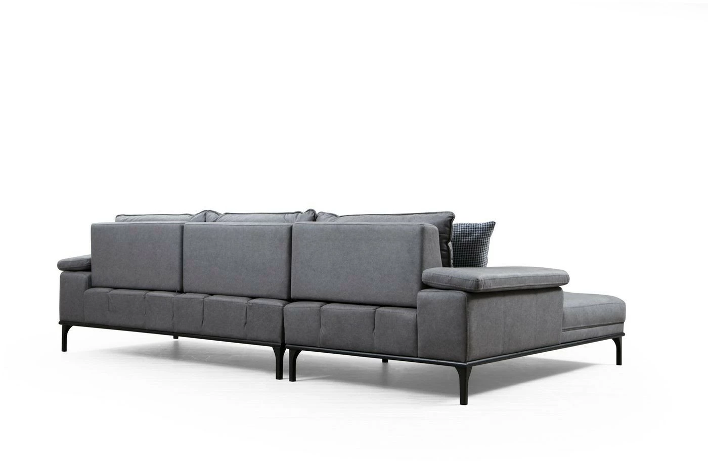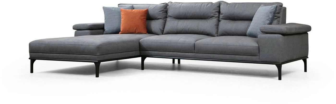Suosittu Hollywood-sohva sopii moneen makuun. Säädettävä käsinoja lisää löhöilymukavuutta. Mattamustat jalat ovat metallia. Divaaniosa on edestäpäin katsottuna vasemmalla puolella.