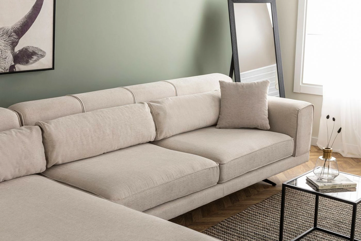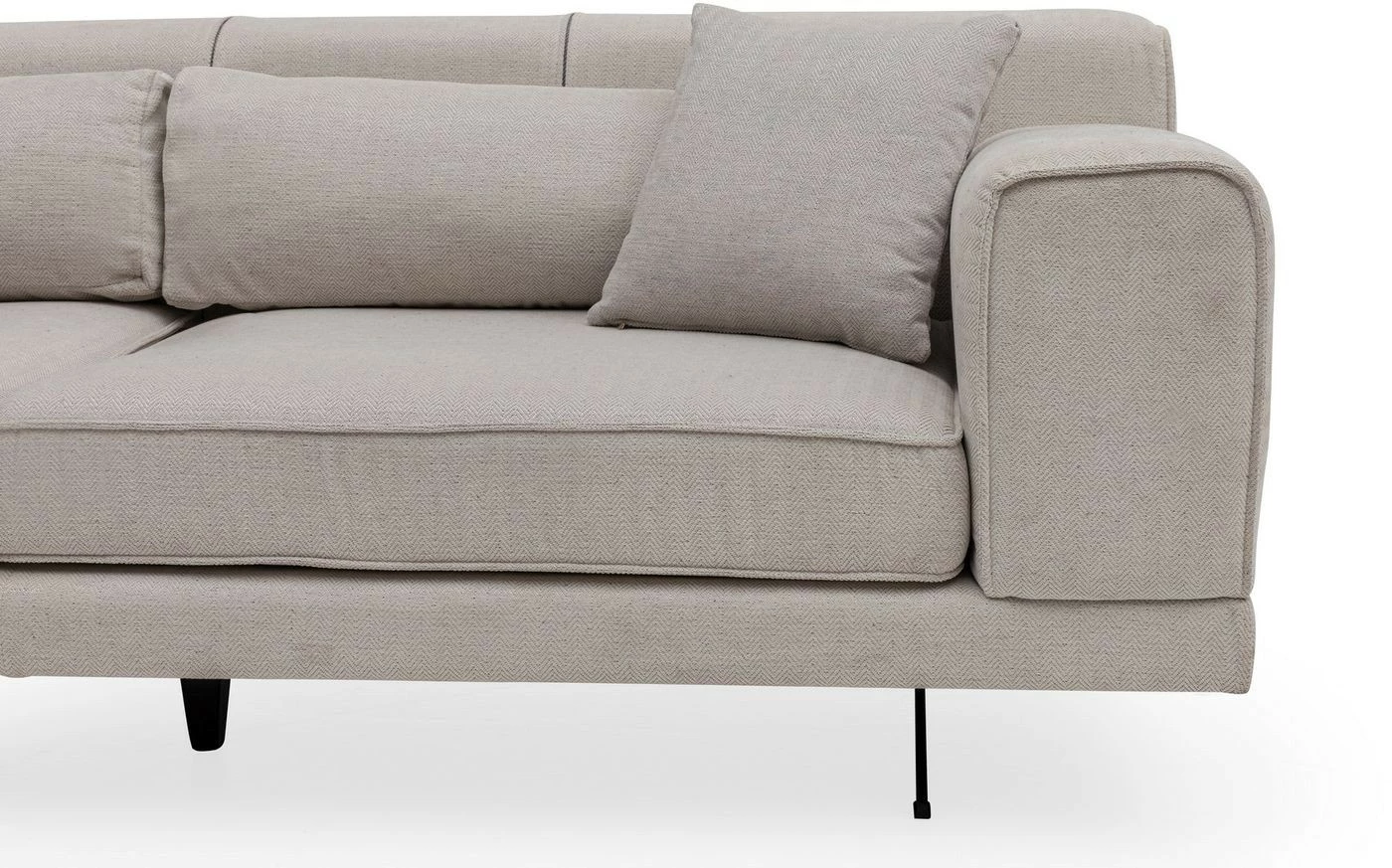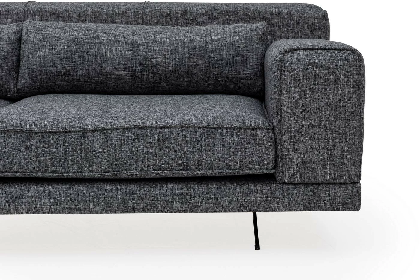 Tyylikkäässä Jivago-sohvassa on hauskat metalliset jalat, jotka ovat mattamustaksi maalattua metallia. Divaaniosa on edestäpäin katsottuna vasemmalla puolella.