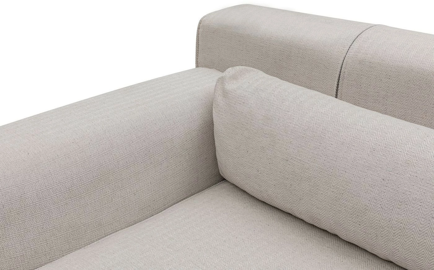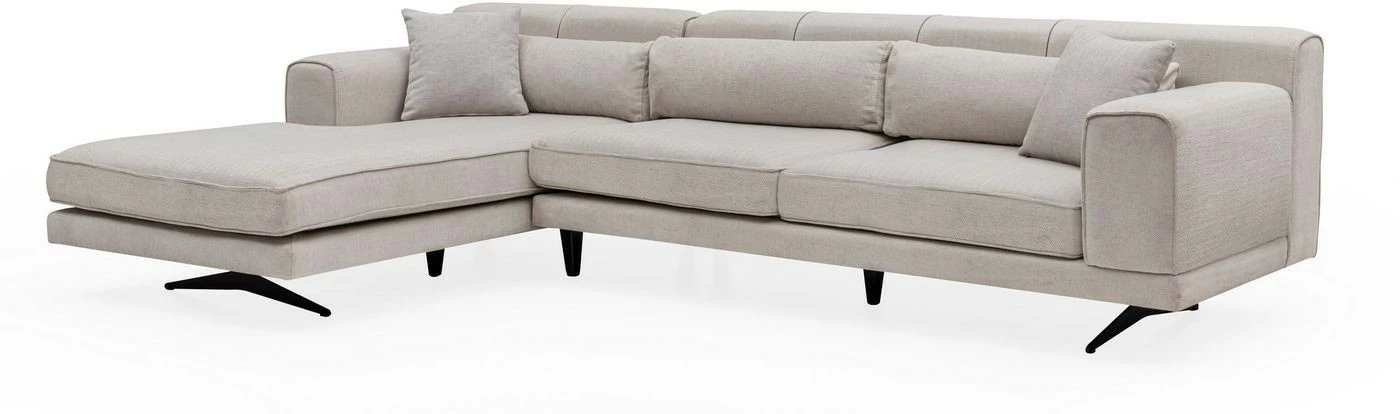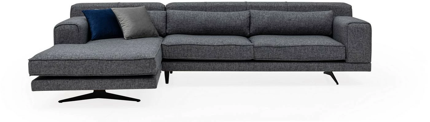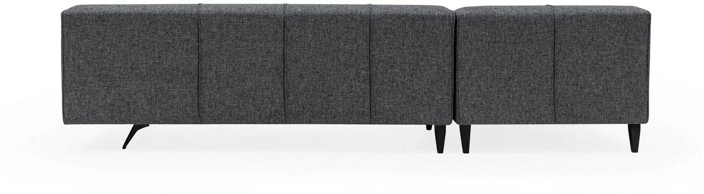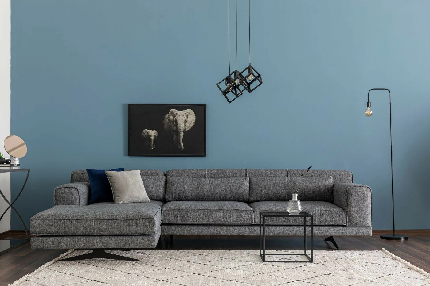 Tyylikkäässä Jivago-sohvassa on hauskat metalliset jalat, jotka ovat mattamustaksi maalattua metallia. Divaaniosa on edestäpäin katsottuna vasemmalla puolella.