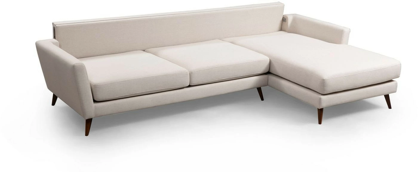 Klassinen design ja vaativaankin makuun sopiva istuinmukavuus – Mayorka on helppo valinta! Säädettävän selkänojan ansiosta Mayorka toimii myös vuodesohvana. Divaaniosa on edestäpäin katsottuna oikealla puolella.