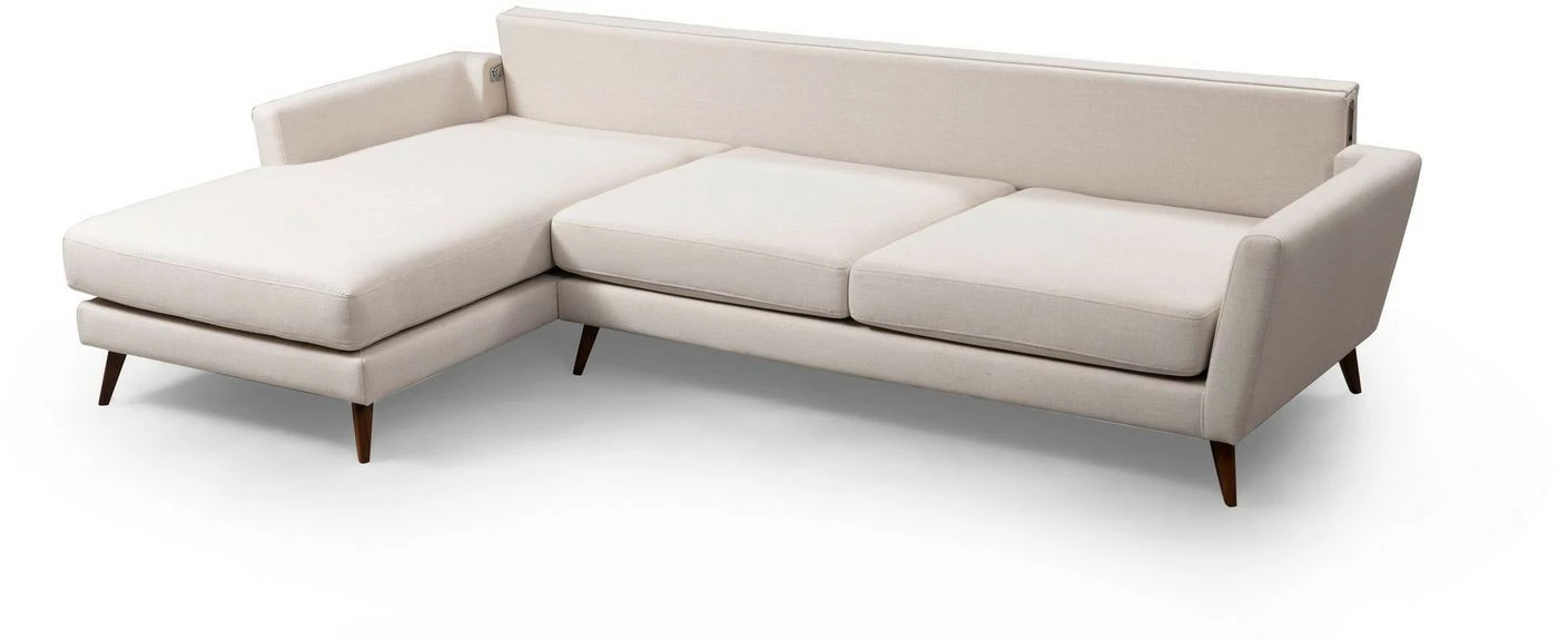 Klassinen design ja vaativaankin makuun sopiva istuinmukavuus – Mayorka on helppo valinta! Säädettävän selkänojan ansiosta Mayorka toimii myös vuodesohvana. Divaaniosa on edestäpäin katsottuna vasemmalla puolella.