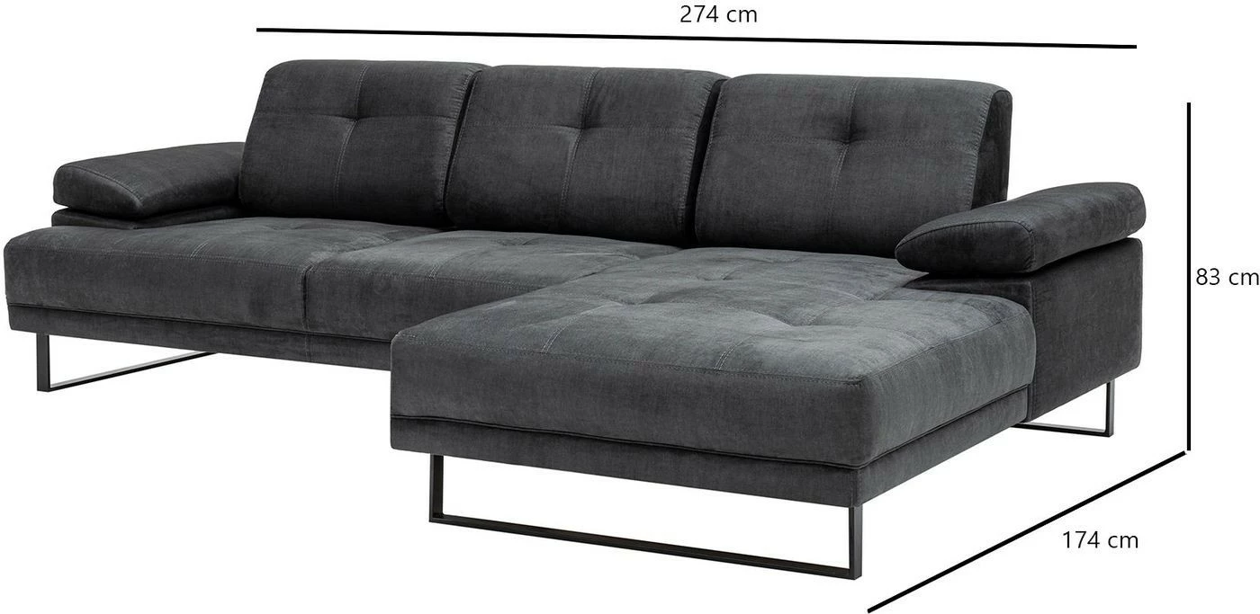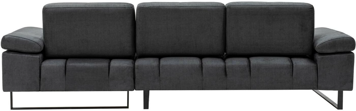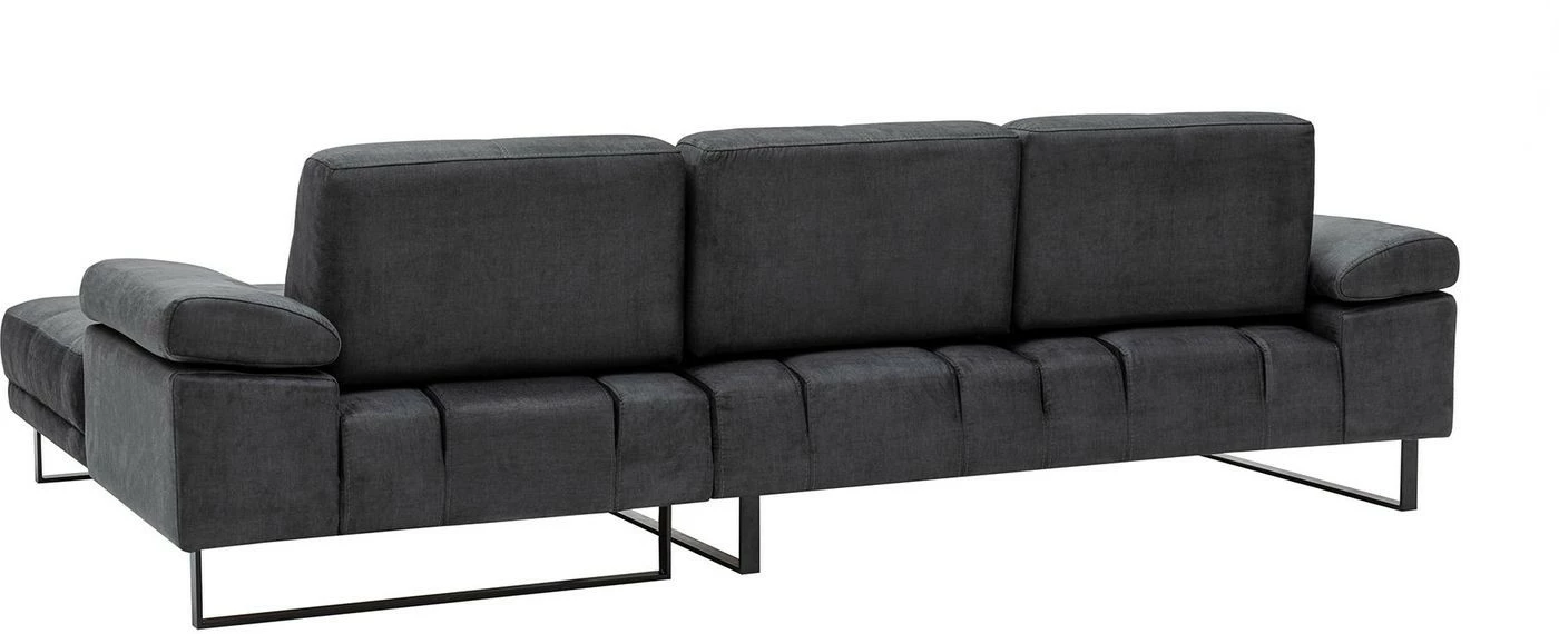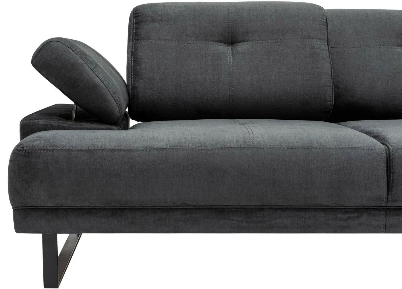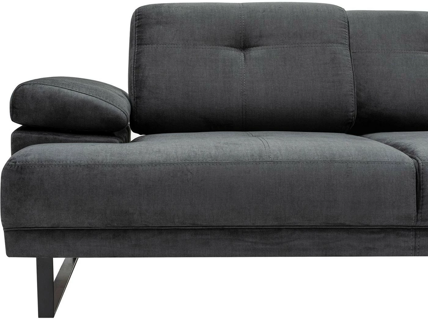 Siro Mustang-divaanisohva sopii sekä klassisen sisustuksen ystäville että trendejä seuraaville. Divaaniosa edestäpäin katsottuna oikealla puolella. Selkänojassa ja käsinojissa on säätömekanismi. Mattamustat jalat ovat metallia.