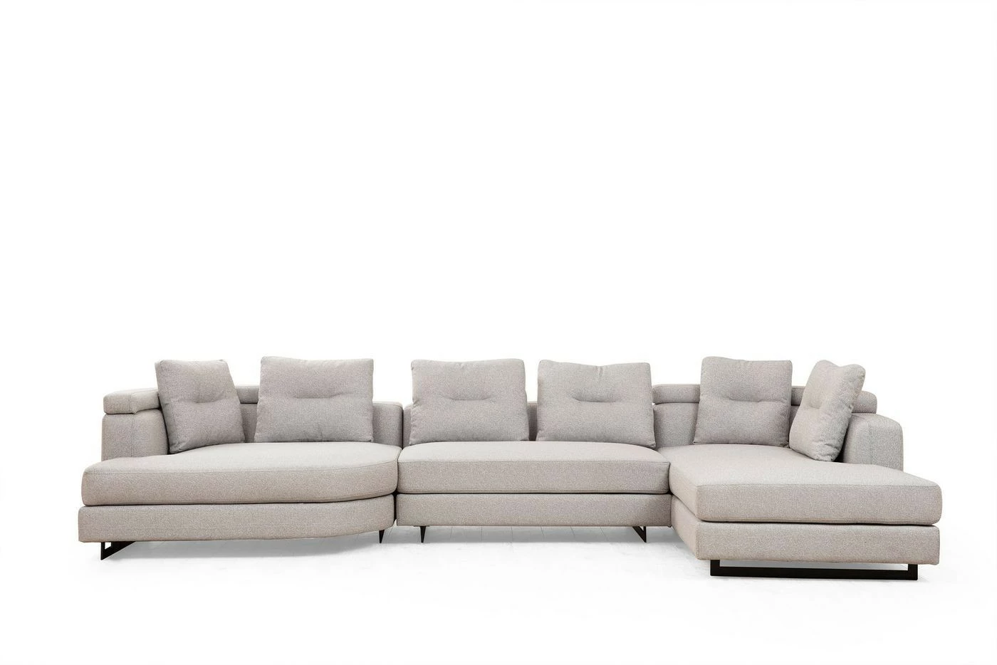 Neljänistuttavassa Padova-sohvassa on kestävä kangasverhoilu ja mustat metallijalat. Divaani on edestäpäin katsottuna oikealla puolella. Mukana toimitetaan kaksi koristetyynyä.