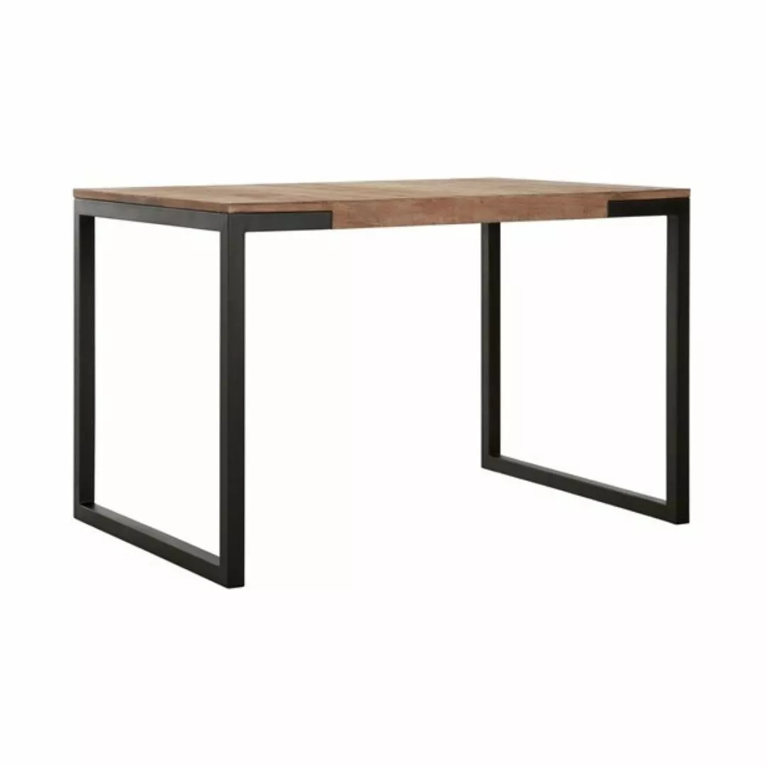Tyylikäs pieni tiikkipuinen ruokapöytä vahvoilla mustilla metallijaloilla. Elemental-sarjan muotoilu on kulmikasta, mutta rouheasti viimeistelty tiikkipinta tuo kotoisuutta ja lämpöä tyyliin. Pieneenkin tilaan voi laittaa pöydän, josta ei puutu poweria! Rouhean lankkupöydän viimeistelee rautajalka, joka nousee pöytälevyn alle pieneksi aksentiksi.