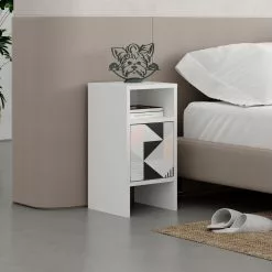 Yöpöytä Linento Furniture Grandma, Geometrinen, Valkoinen/monivärinen