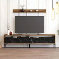 TV-taso Ja Hylly Linento Furniture Istanbul, Marmorikuosi, Ruskea/musta