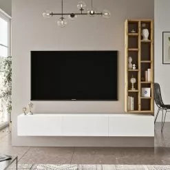 TV-taso Ja Seinähylly Linento Furniture LV9, Ruskea/valkoinen