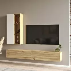 TV-taso Ja Seinähylly Linento Furniture LV10, Ruskea/valkoinen