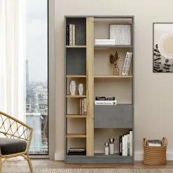Kirjahylly Linento Furniture LV21, Tammi/hopeanharmaa