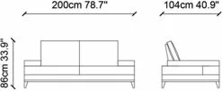 Sohva Linento Furniture Sino, 2-istuttava, Harmaa