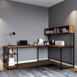 Työpöytä Ja Apupöytä Linento Furniture VS6, Ruskea/harmaa