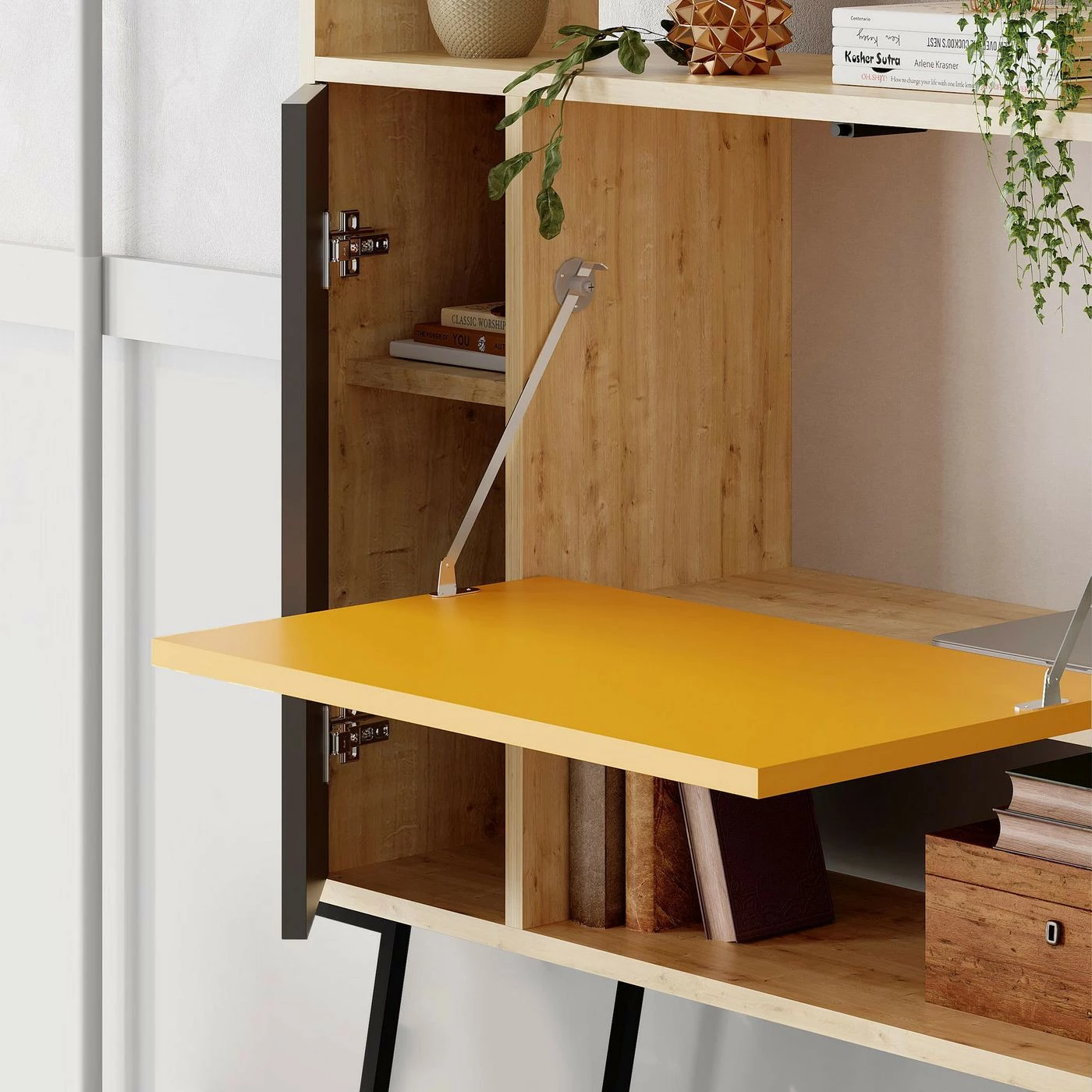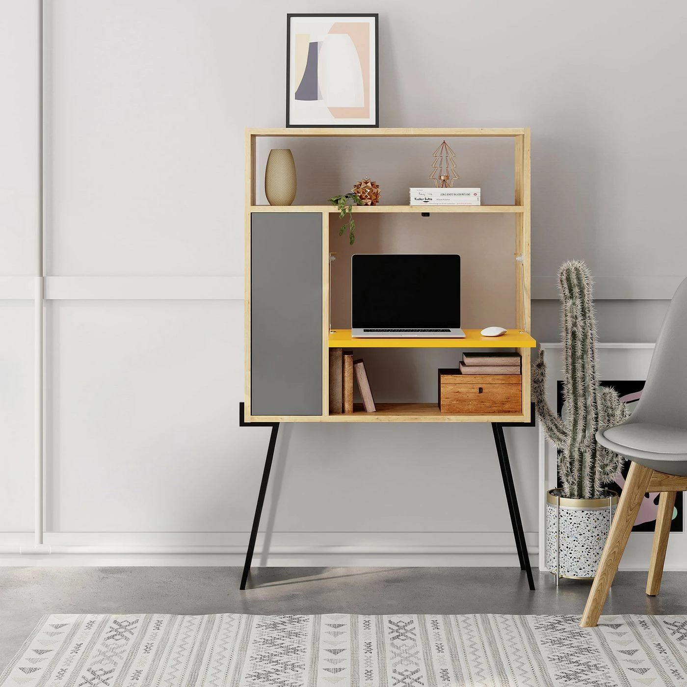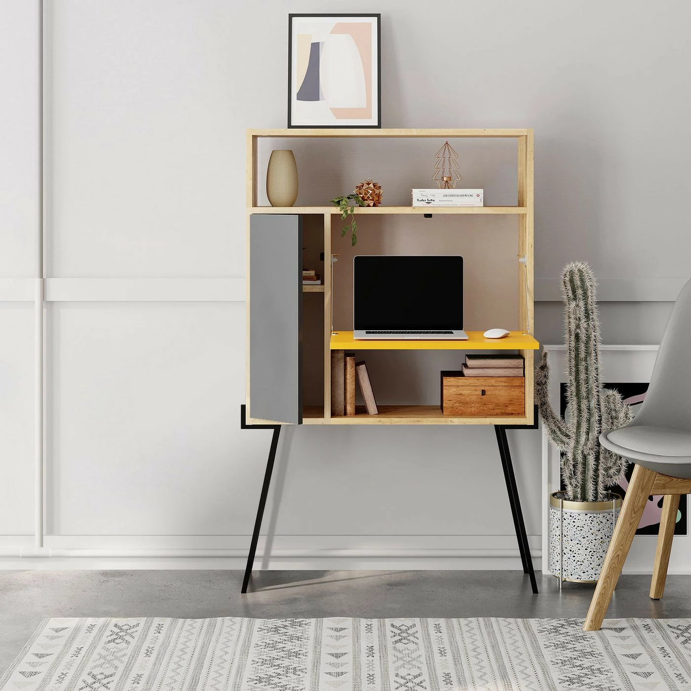 Monikäyttöinen hylly sopii niin olohuoneeseen, makuuhuoneeseen kuin keittiöön. Sirot jalat ovat metallia.
