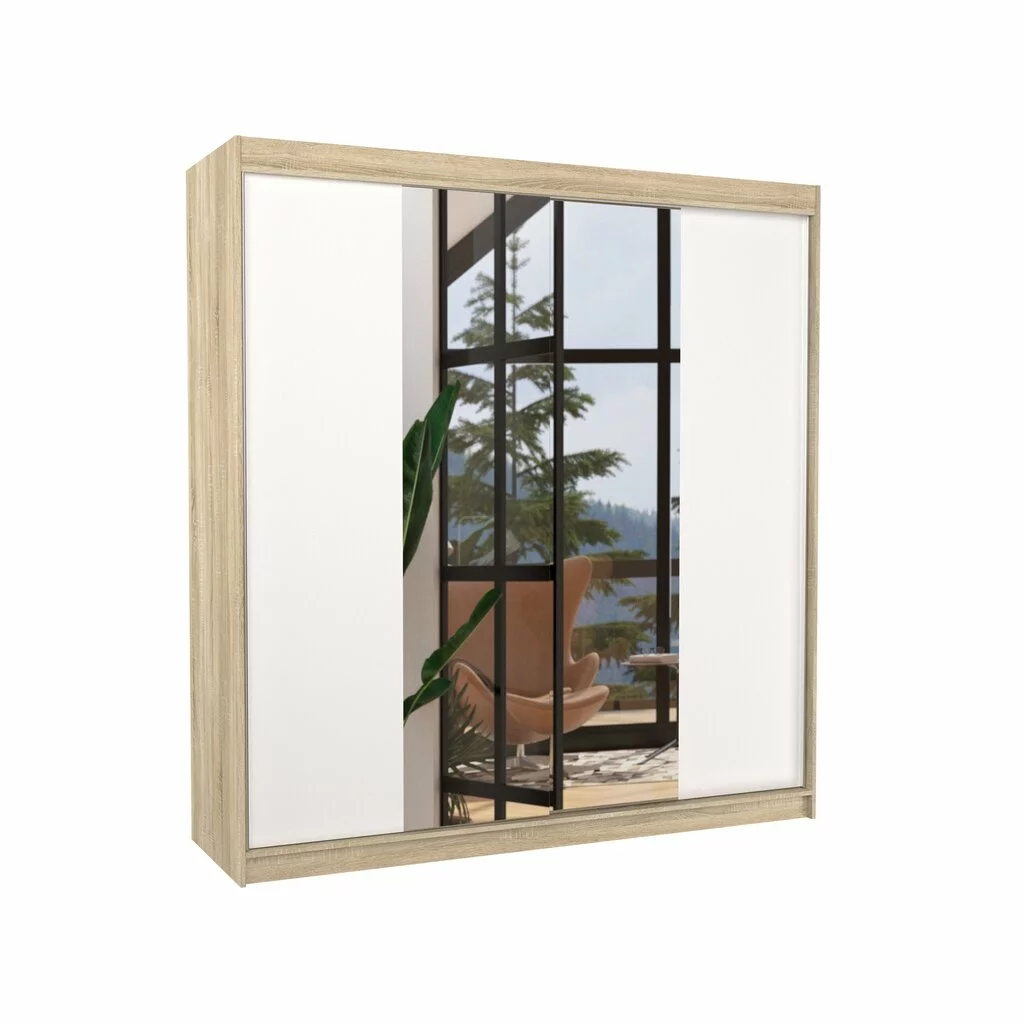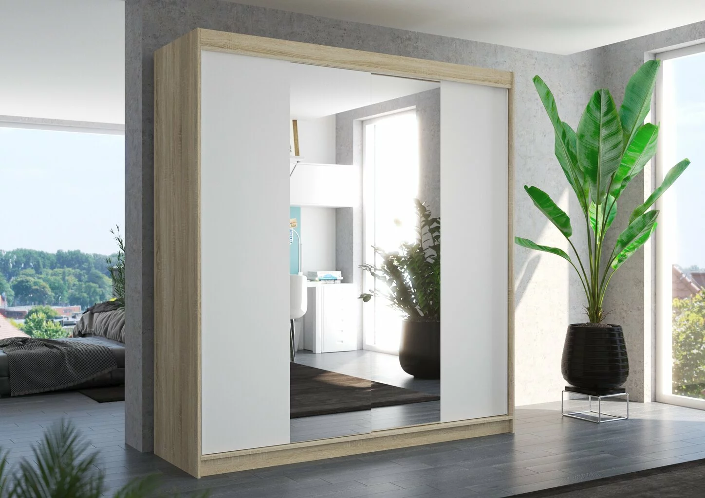- Moderni kaappi, jossa kaksi liukuovea peileillä;