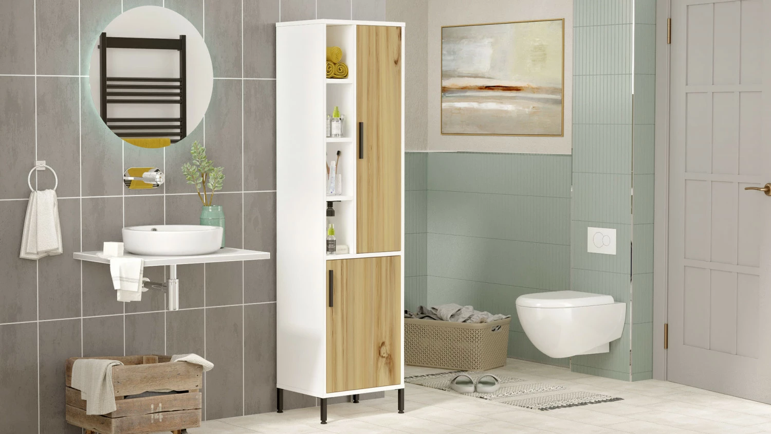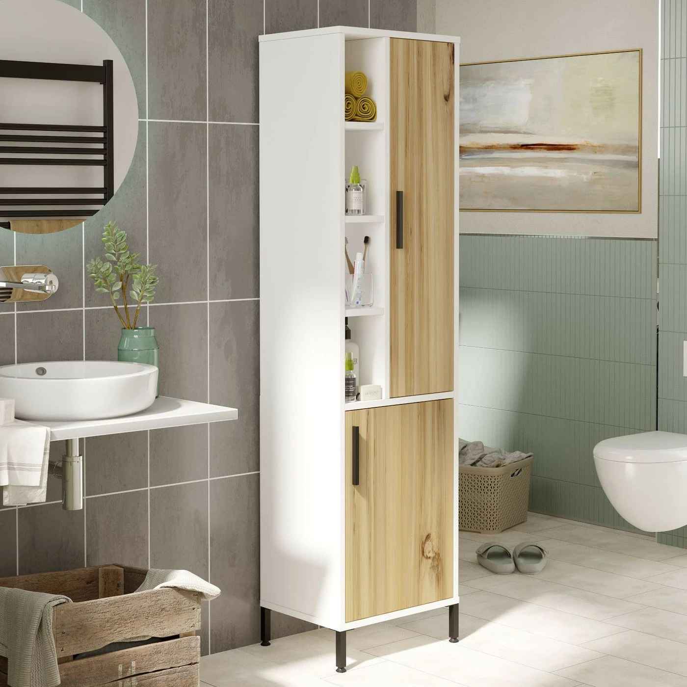 Moneen huoneeseen ja makuun sopiva kaappi sisältää paljon säilytystilaa.