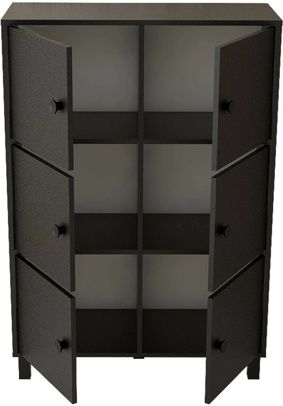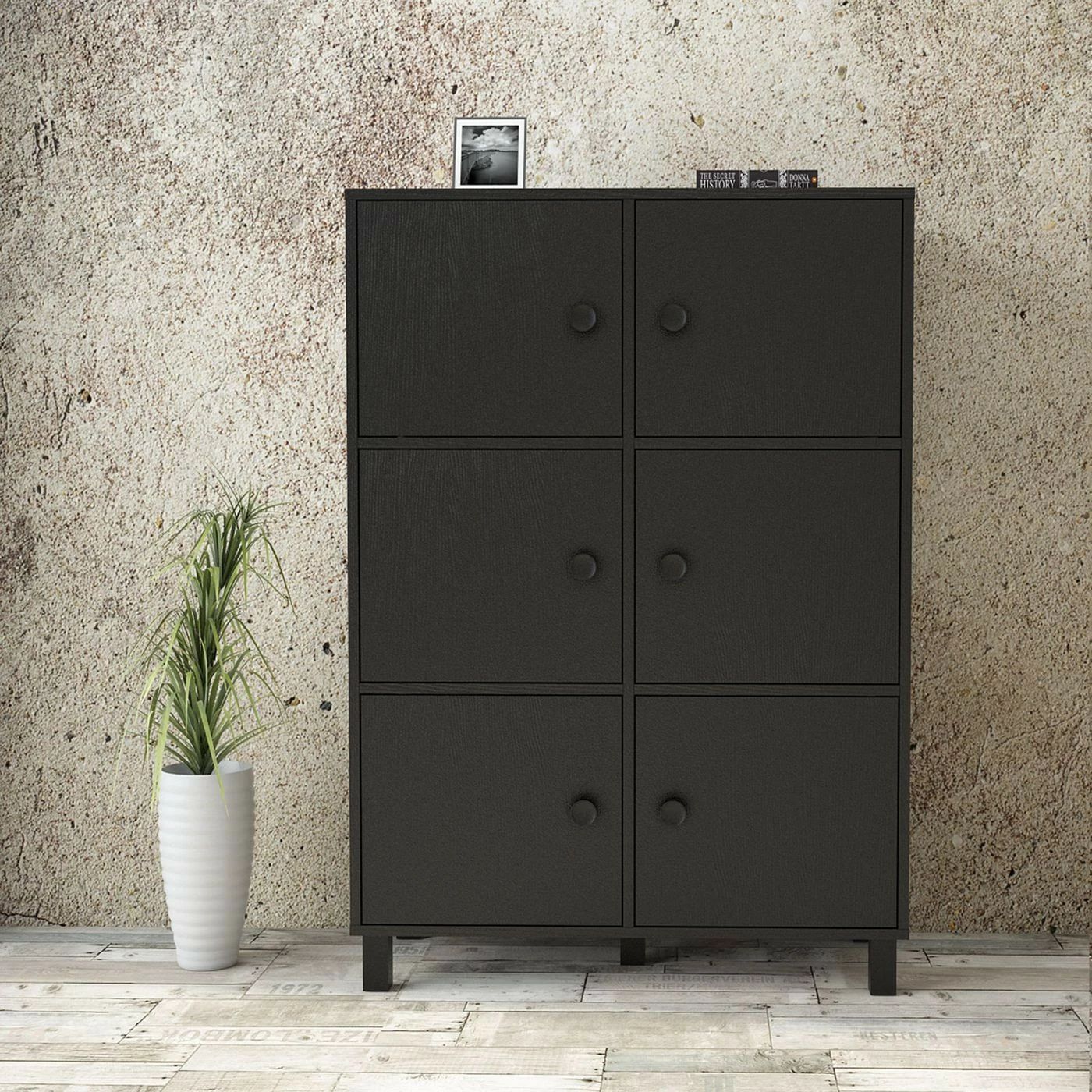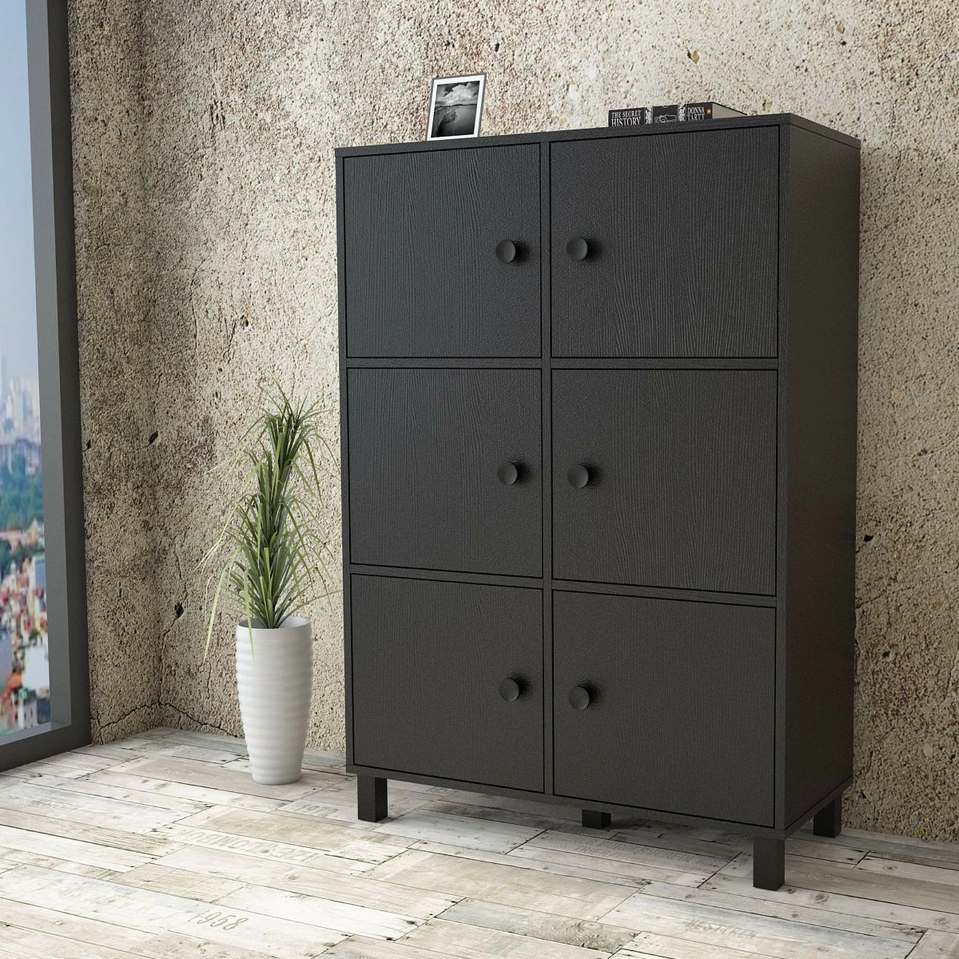 Käytännöllisessä säilytyskalusteessa on kuusi ovea.