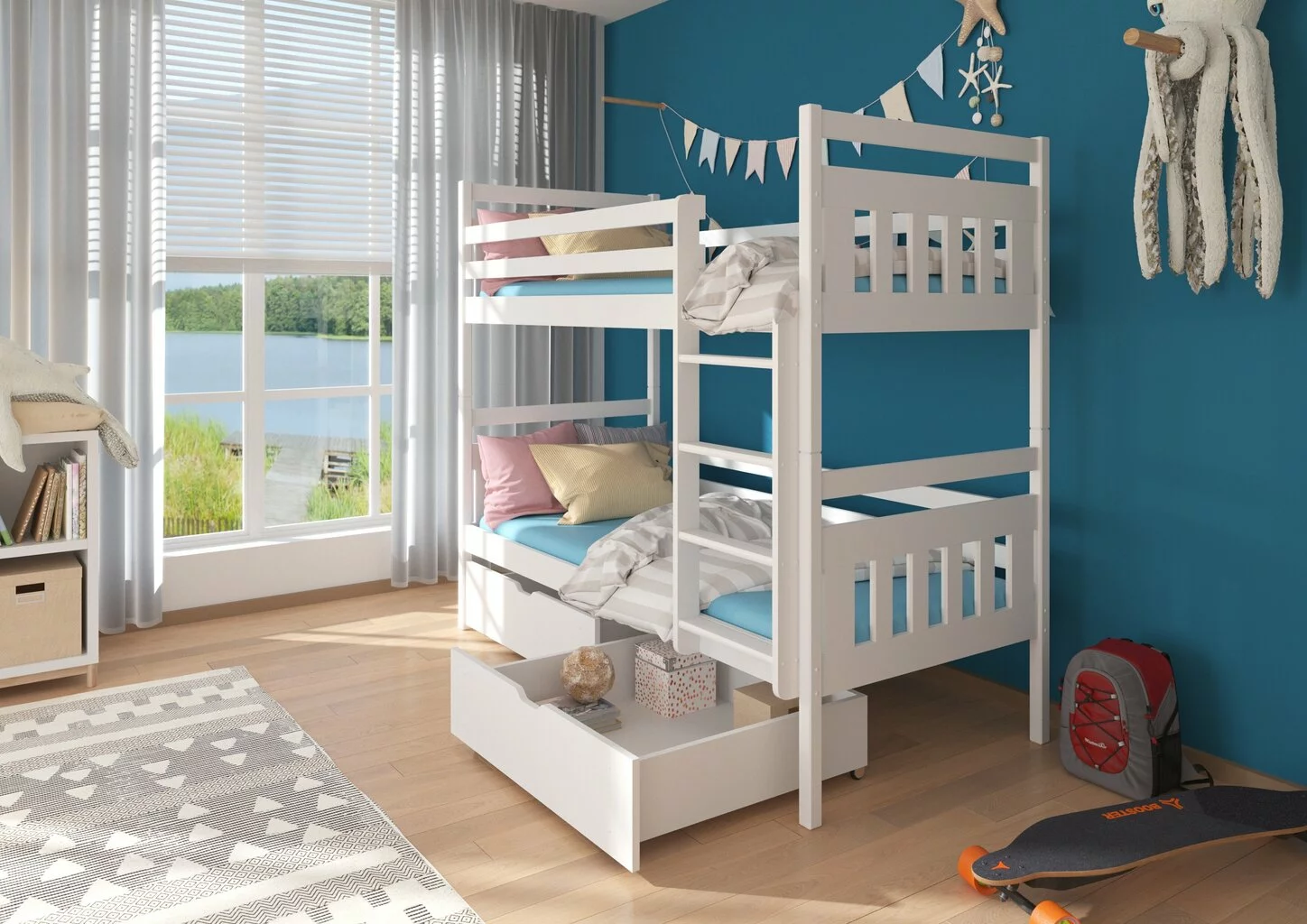 Minimalistisen muotoilun ansiosta kompakti kerrossänky sopii täydellisesti pieneen lastenhuoneeseen.