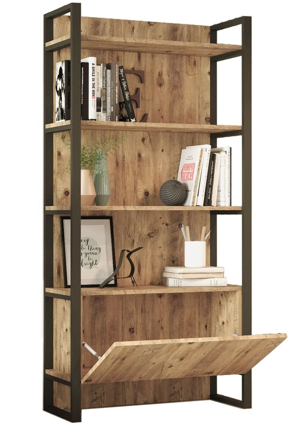 Metallirunko antaa hyllylle vankan ilmeen.