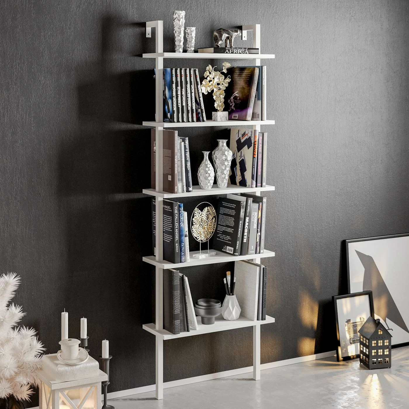 Seinään kiinnitettävä valkoinen Piante-kirjahylly on kauniin ilmava.