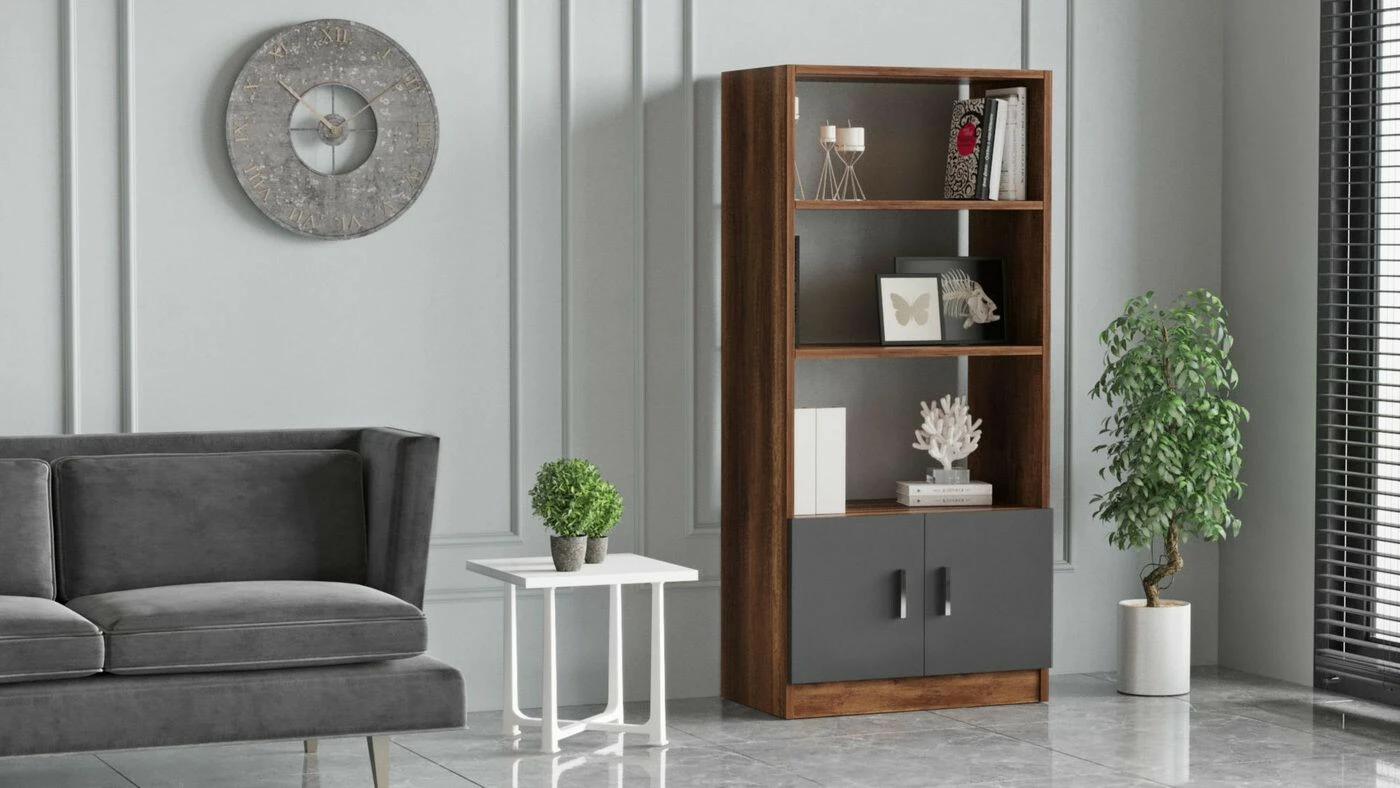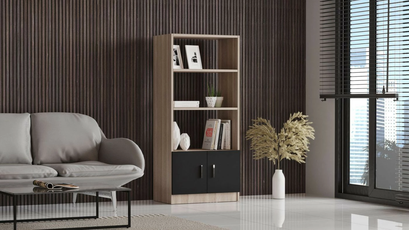 Vario D -kirjahylly. Alaosan kaappiin voit panna esineet, jotka haluat piilottaa katseilta.