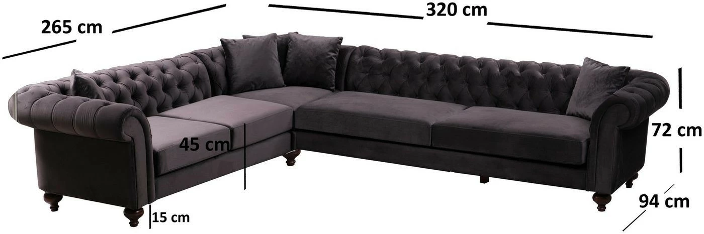 Komea Bogart-kulmasohva kutsuu viettämään aikaa isommallakin seurueella. Tekstiiliverhoilu ja mustat puiset jalat. Lyhyempi osa on edestäpäin katsottuna vasemmalla puolella. Lyhyemmän osan leveys on 263 cm.