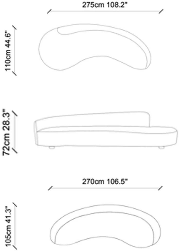 Cloud-sohvan muoto on saanut innoituksensa taivaan pilvistä. Sohvassa on samettiverhoilu ja somat puiset jalat.
