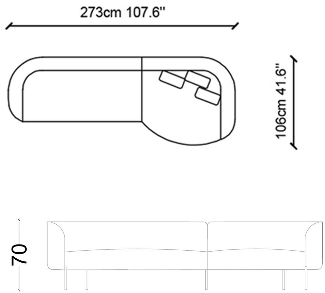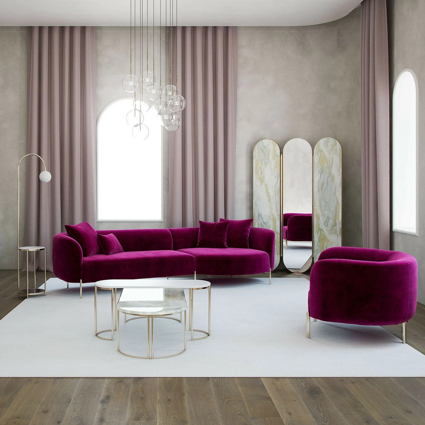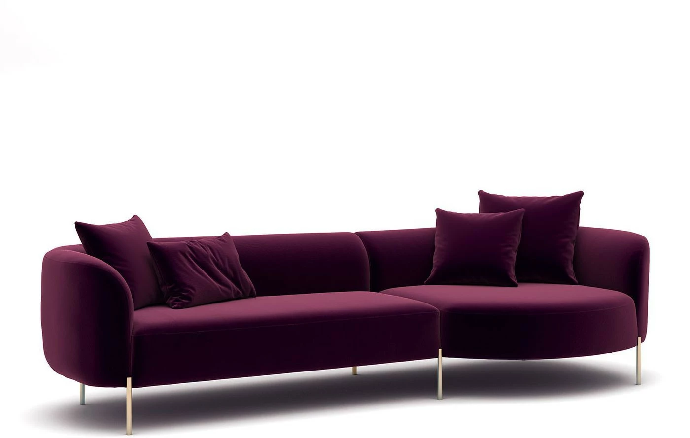 Karkinvärisessä Macaroon-sohvassa on kaunis kaareva muoto.