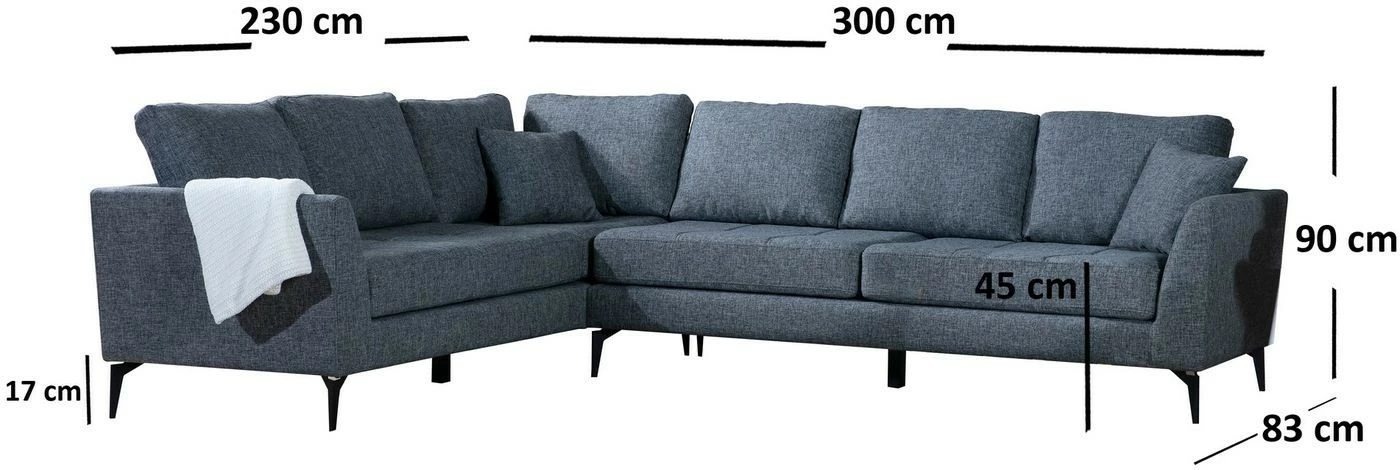 Tempo-sohvassa on konstailemattoman harmaa tekstiiliverhoilu ja mattamustat metallijalat. Älä suotta tempoile vaan istu Tempolle! Sohvan lyhyempi osa on edestäpäin katsottuna vasemmalla puolella. Leveys 300 cm/230 cm.