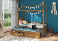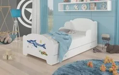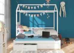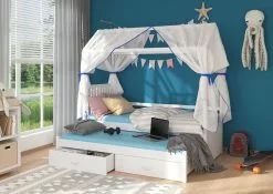 Sänky ADRK Furniture Jonasek Sivuosalla 80x180cm, Valkoinen Sinisellä Katoksella.