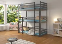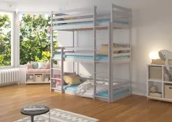 ADRK Furniture Tedro -3-kerrossänky Lapsille, 210 X 97 X 208 Cm, Harmaa