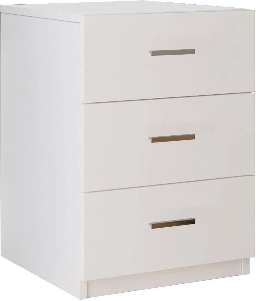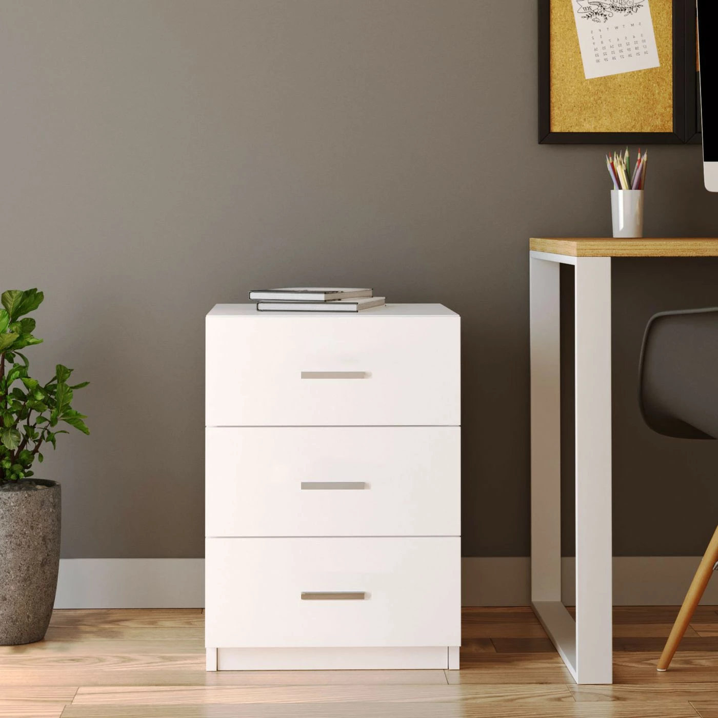 Valkoinen Vario C -lipasto. Kolmeen laatikkoon mahtuu mukavasti tavaraa.