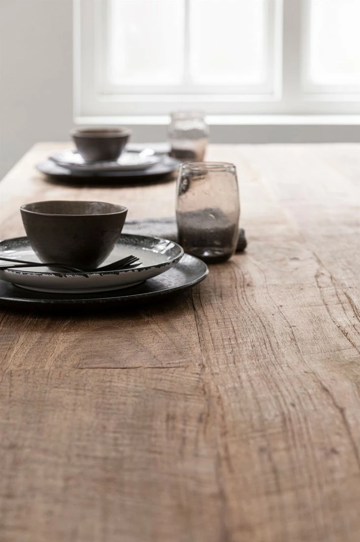 Katsetta ja elämää kestävään sisustustyyliin puinen ruokapöytä. Mielenkiintoinen jalkojen muotoilu, jossa jalat jättävät hyvän tilan kaikille istujille. Erittäin käytännöllinen ja helppohoitoinen tiikkipöytä. Tämä pöytää kestää arjen – ja varsinkin juhlat!