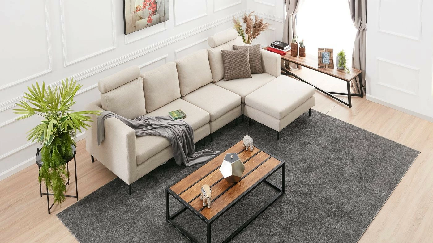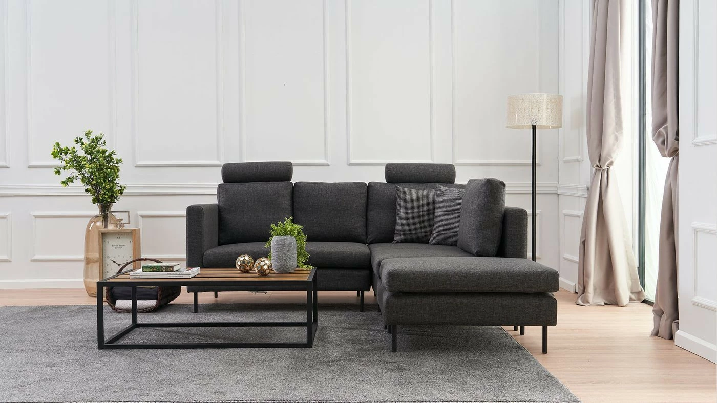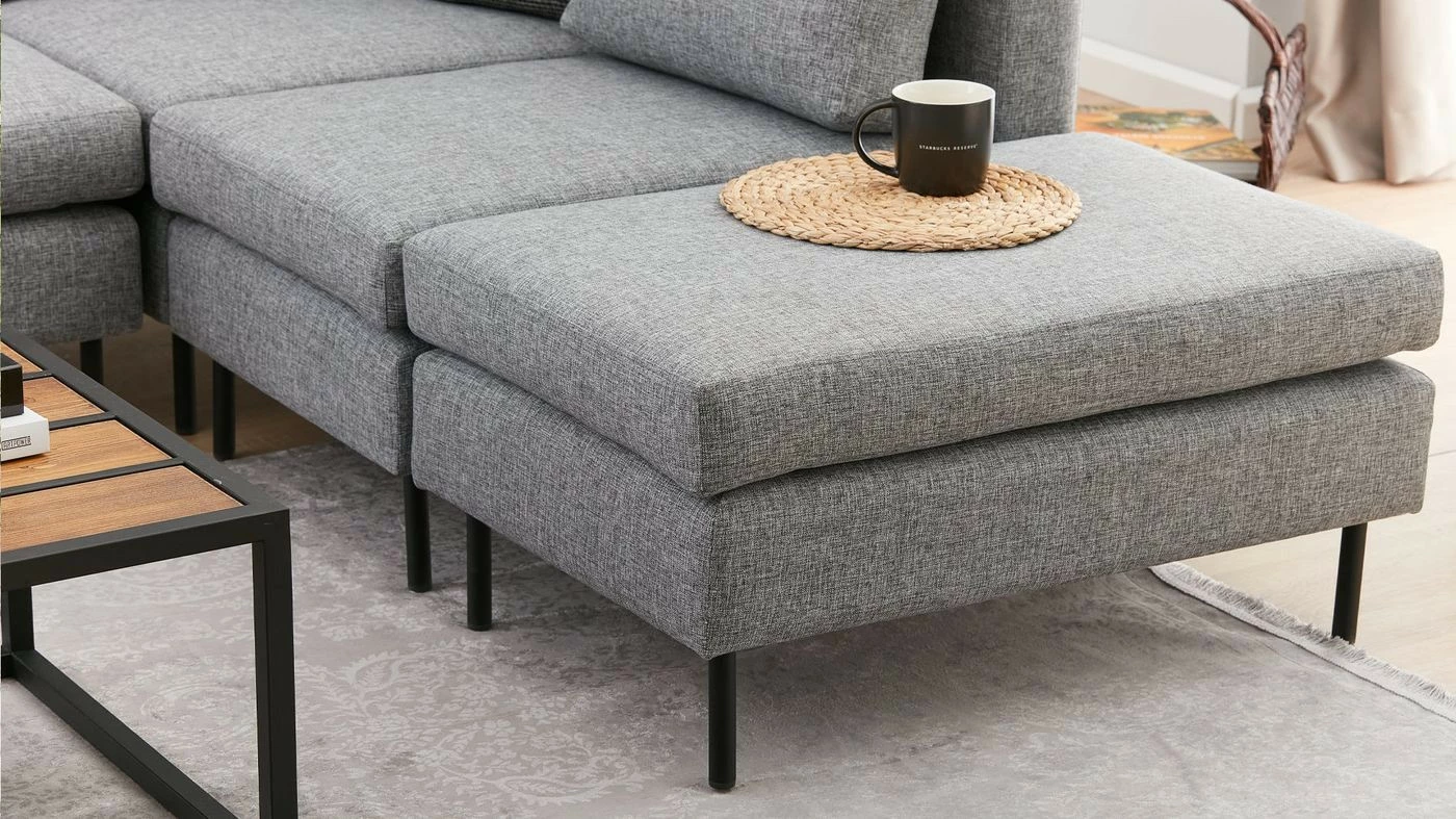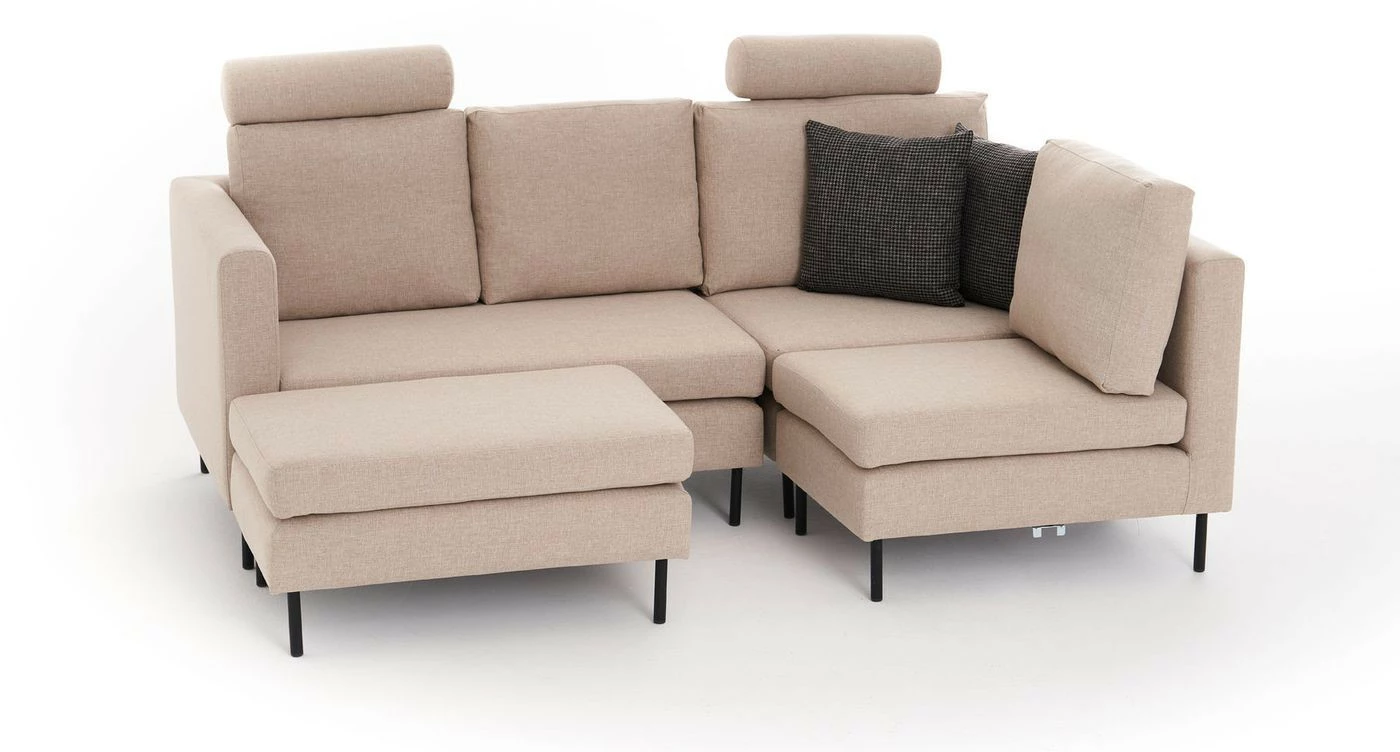 Mino-moduulisohvasta teet juuri itsesi näköisen. Kokonaisuus sisältää kahdenistuttavan moduulin, yhdenistuttavan moduulin, kulmamoduulin ja rahin. Kangasverhoilu ja metallijalat.