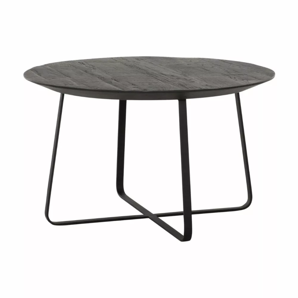 Neptunes on kokomusta pyöreä sohvapöytä vahvalla mustalla metallirungolla. Laadukas tiikkipöytä on viimeistelty taidolla mahdollisimman sileäksi, siten että lankkujen elävyys ja puun aaltoilu on saatu kuitenkin