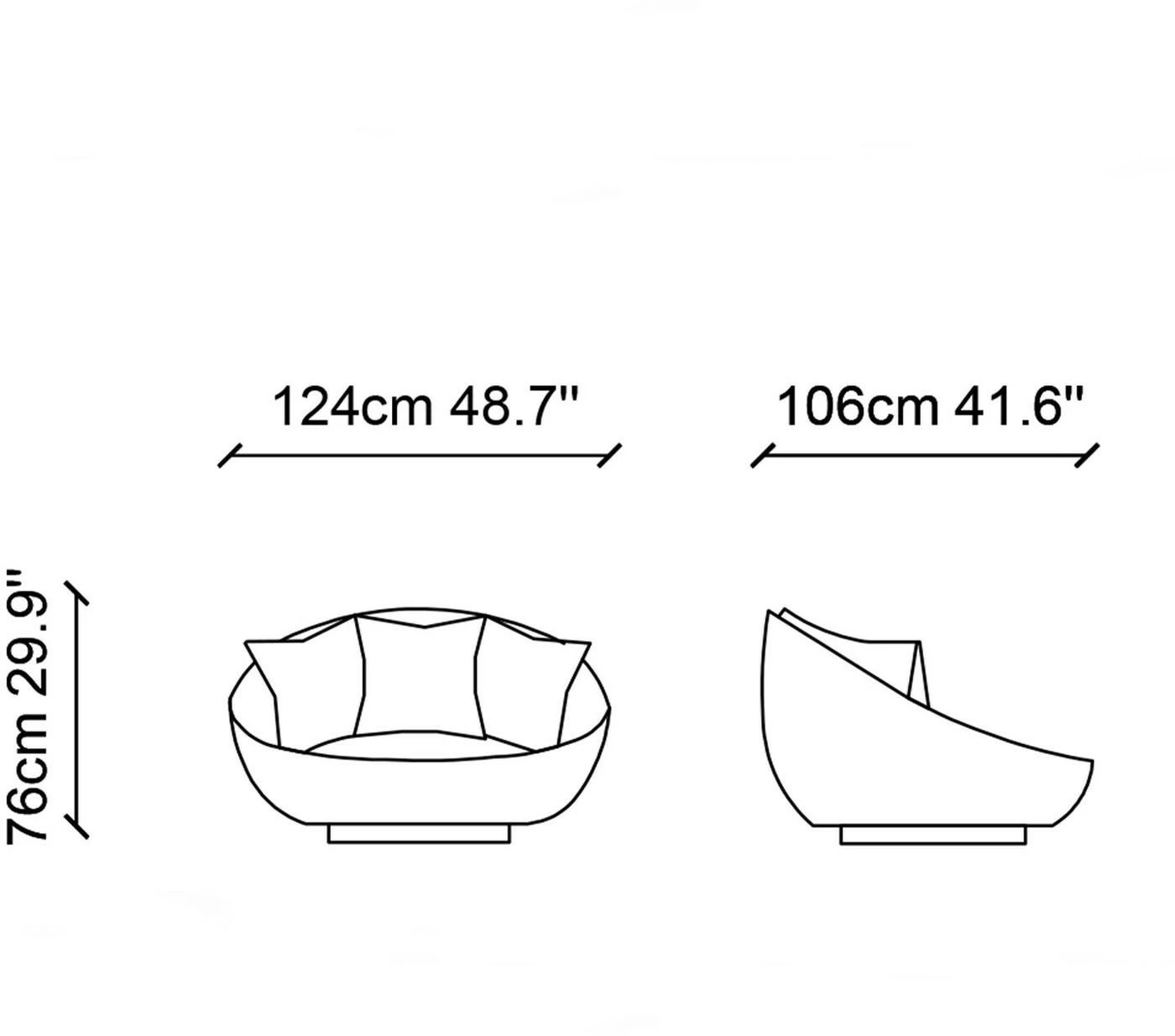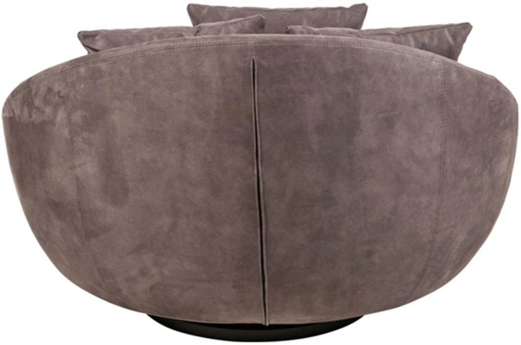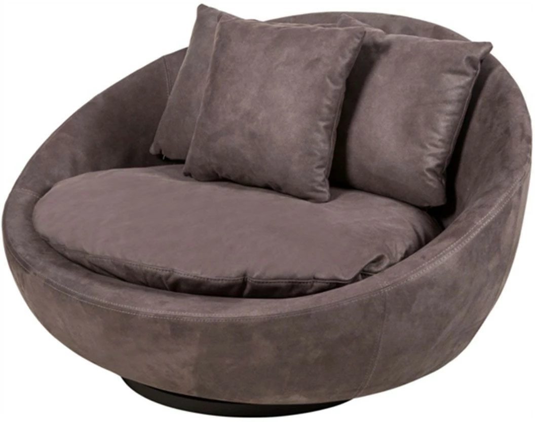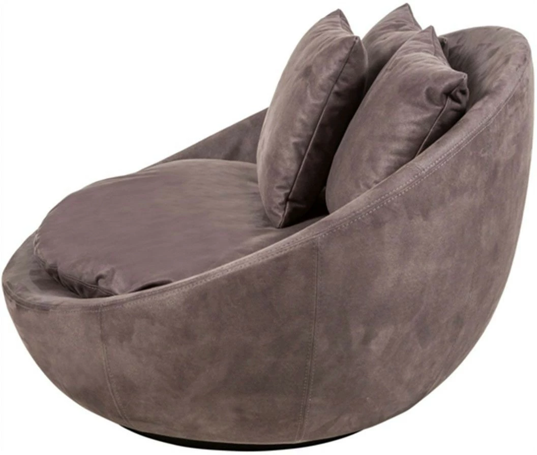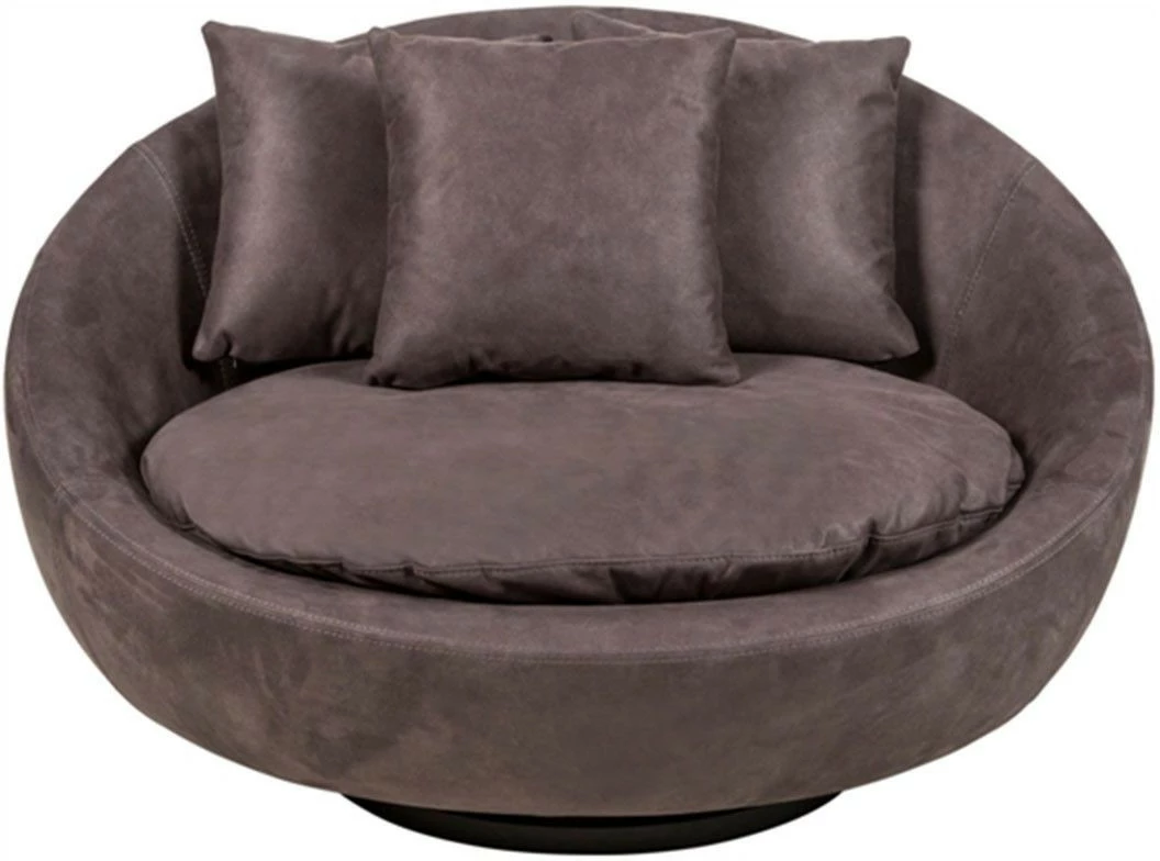 Cherry-nojatuolin soma, pyöreä muoto kutsuu luokseen löhöämään. Verhoilu on nupukkinahkaa.