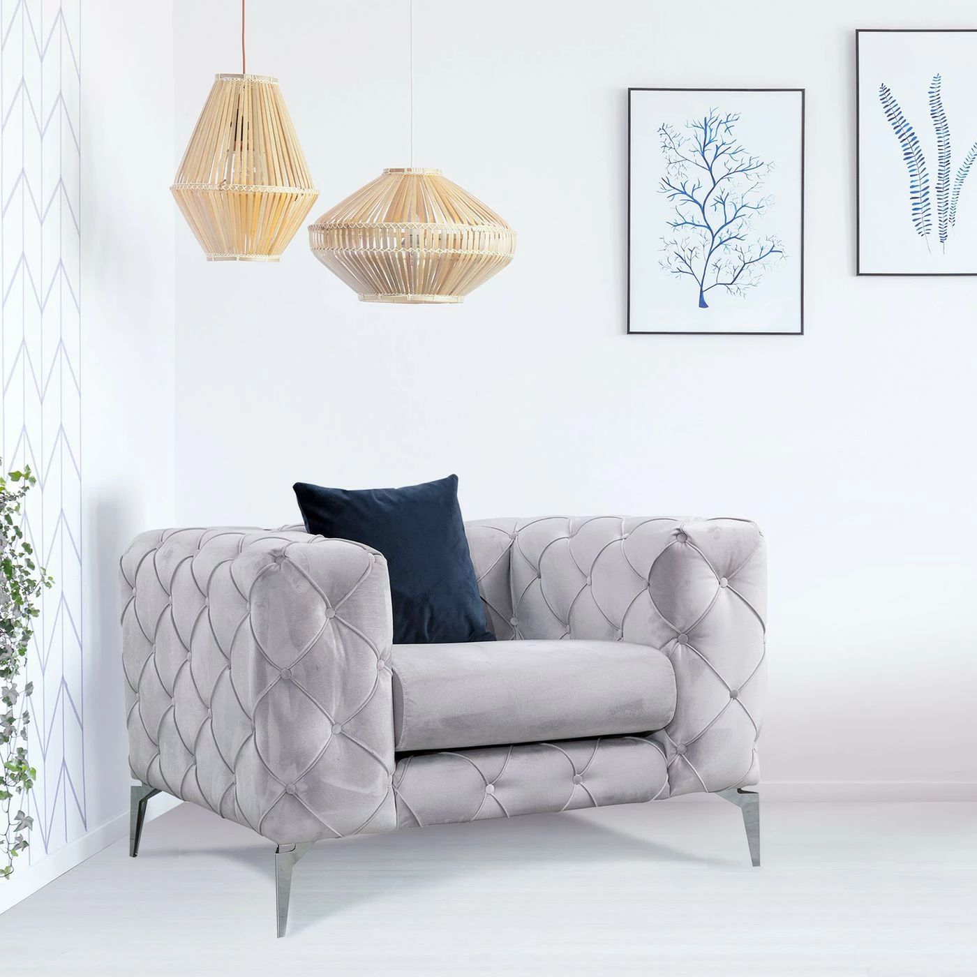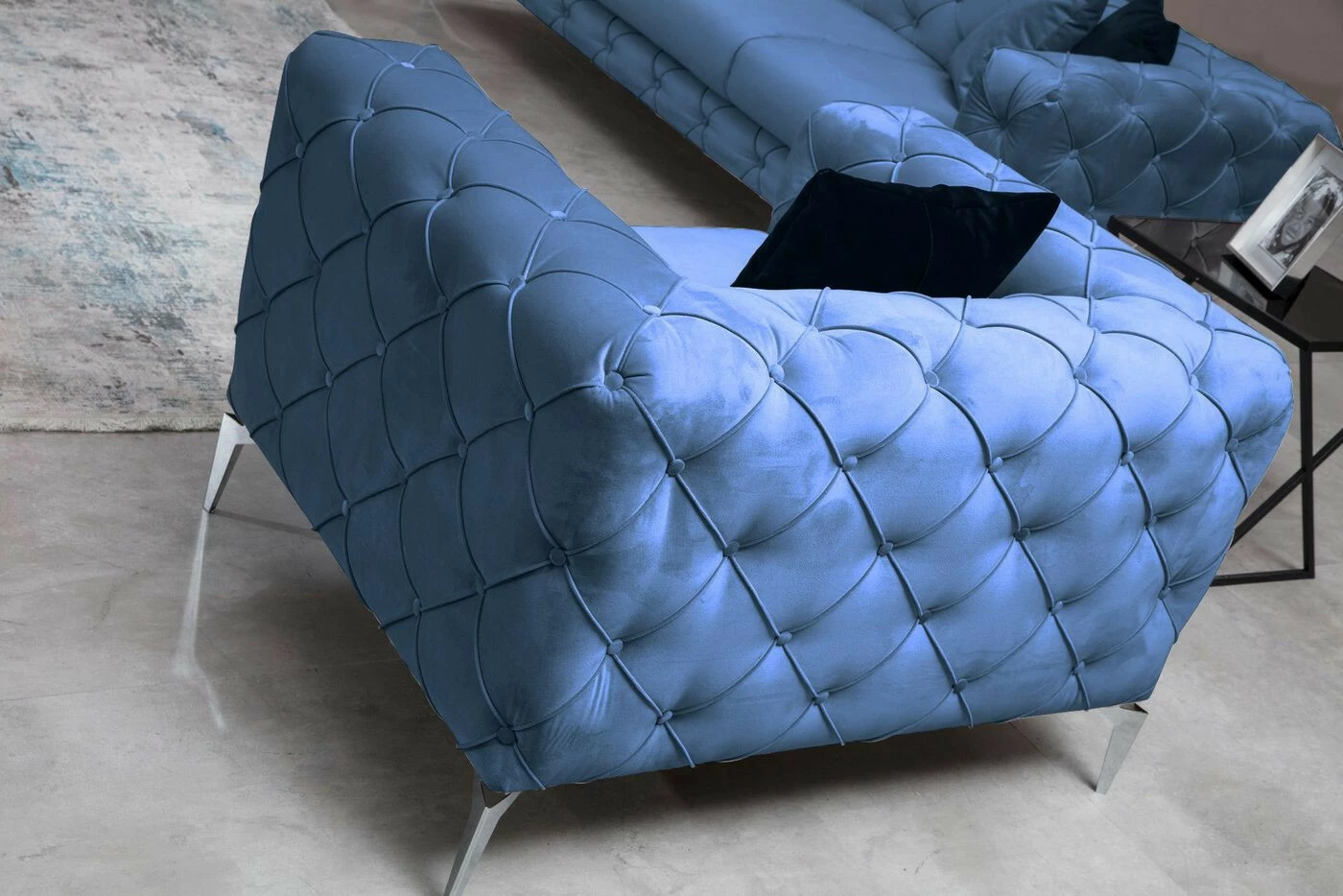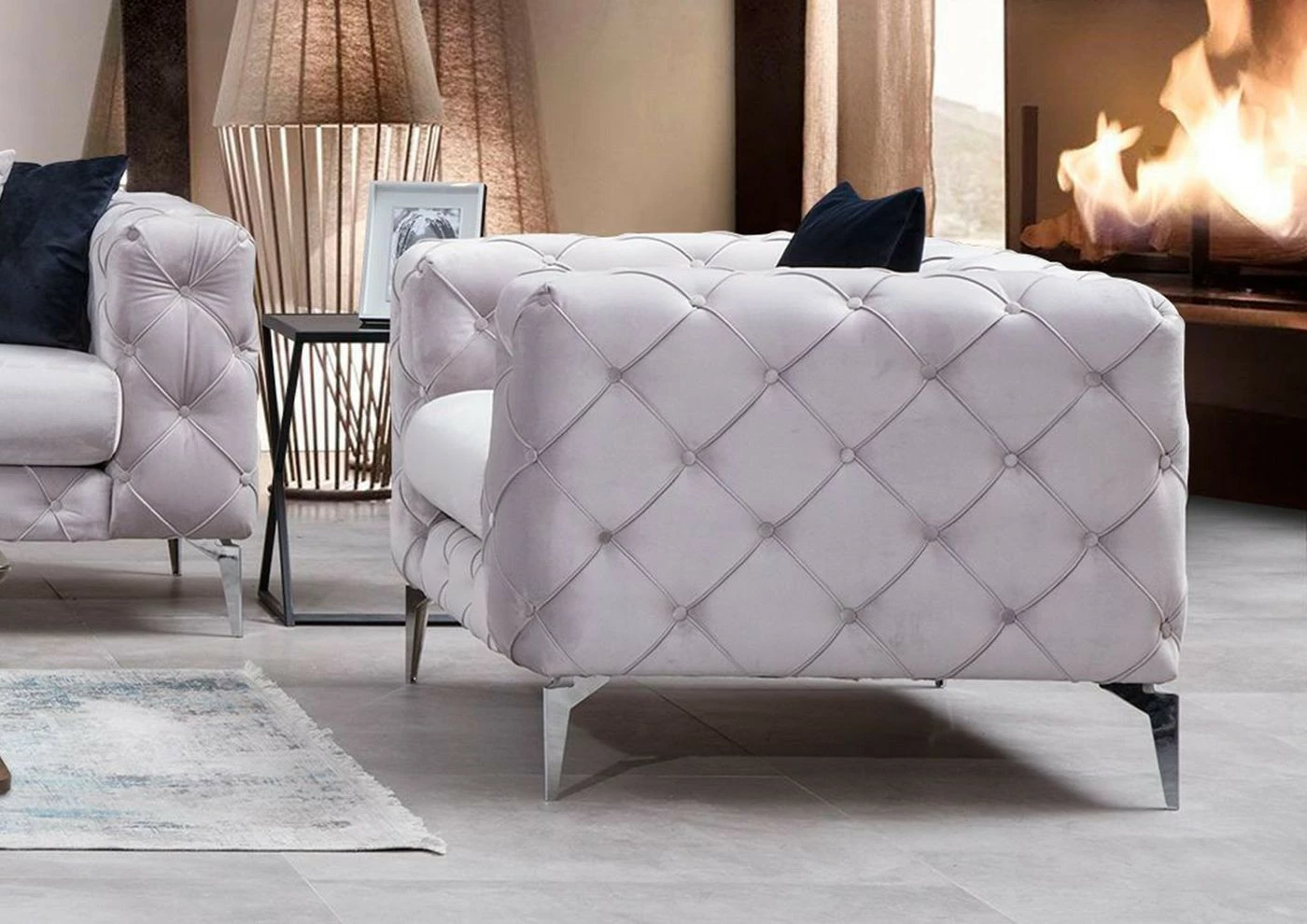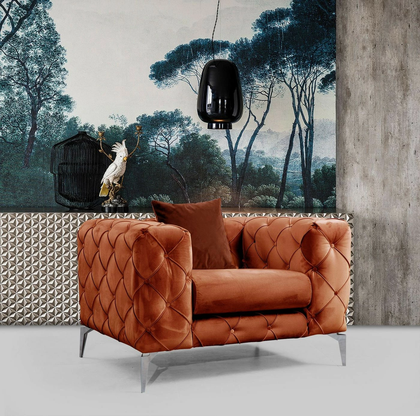 Arvokkuutta huokuva Como sopii olohuoneen paraatipaikalle. Krominväriset jalat viimeistelevät ylellisen ilmeen.