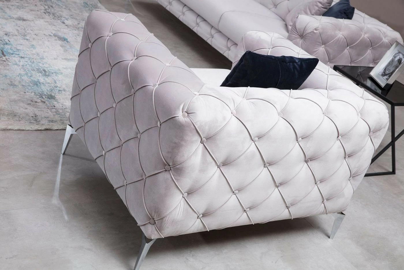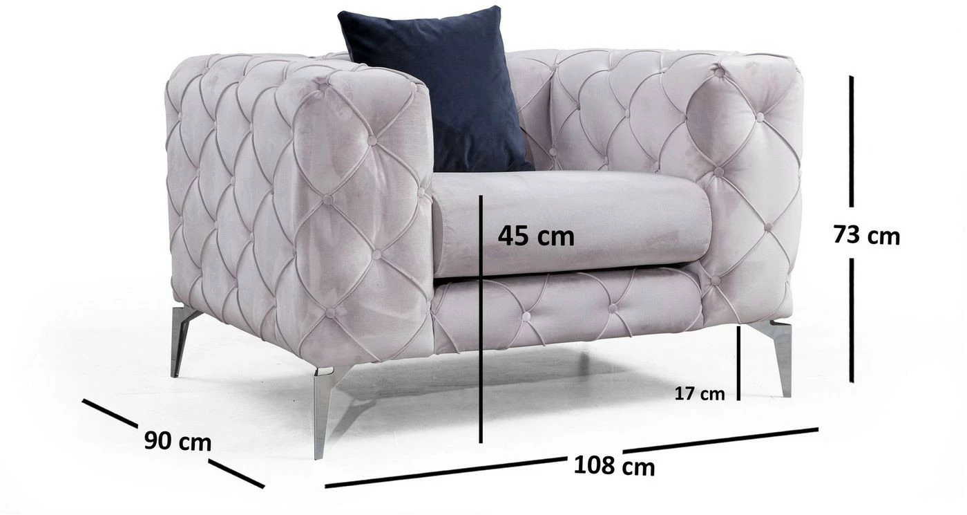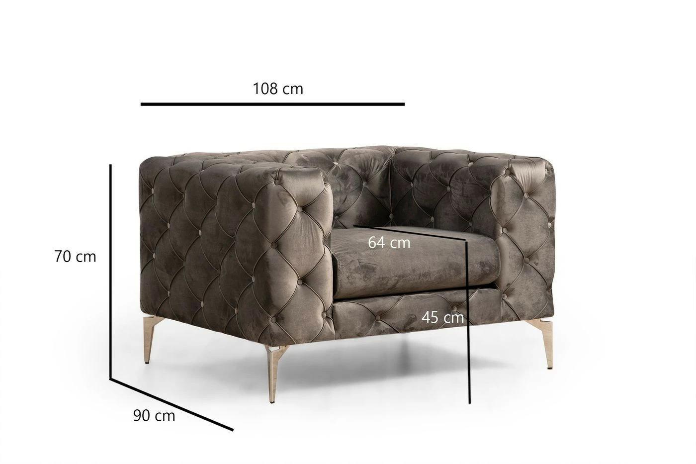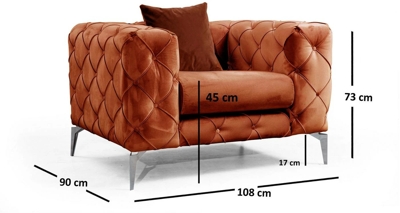 Arvokkuutta huokuva Como sopii olohuoneen paraatipaikalle. Krominväriset jalat viimeistelevät ylellisen ilmeen.