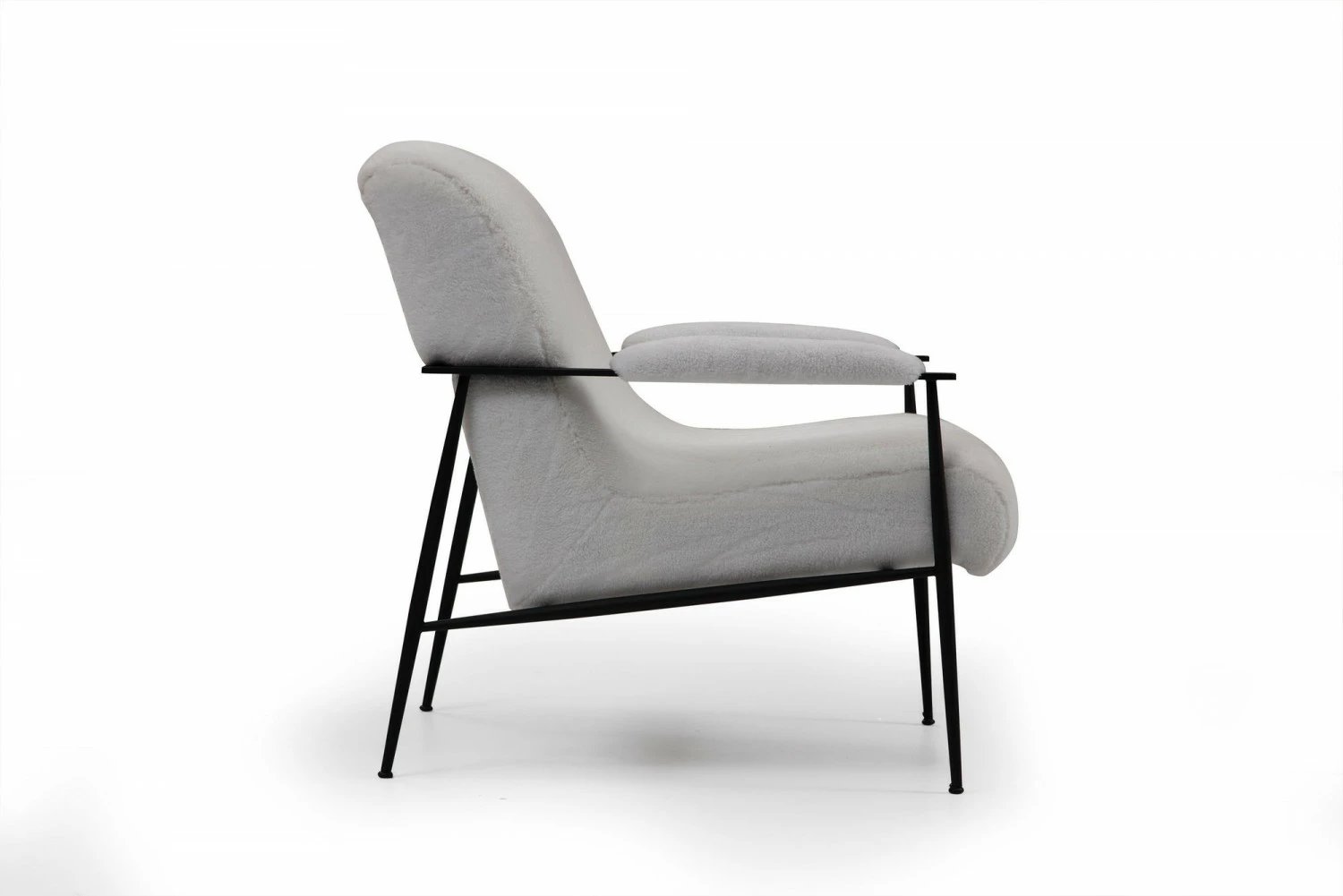 Pehmeässä Jazz-nojatuolissa on sirot, mattamustat metallijalat. Tässä tuolissa kelpaa jatsata.