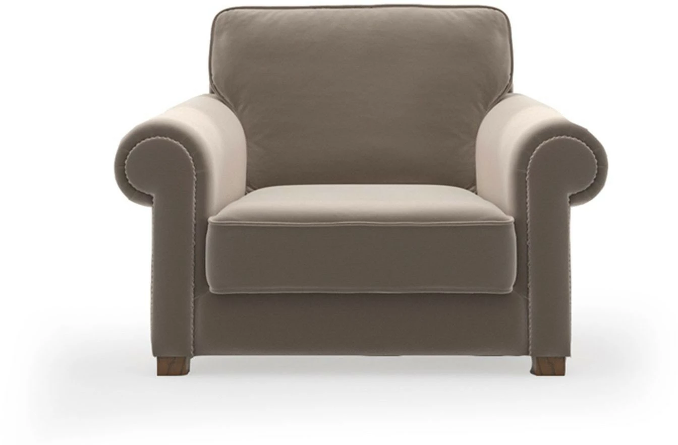 Rauhallisen vaalea Panama-nojatuoli. Nojatuolissa on ihanan pehmeä samettiverhoilu ja kauniit puiset jalat.