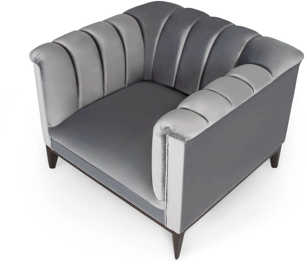 Peran harmaa samettiverhoilu kiiltää kauniisti. Peraa kannattelevat upeat puiset jalat.
