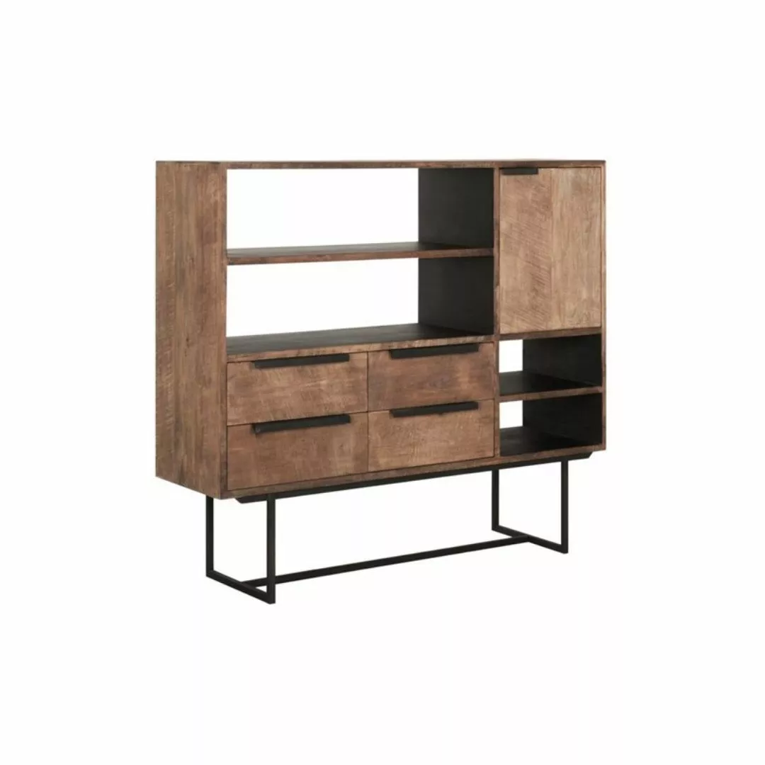 Tyylikäs puinen kaappi vahvoilla mustilla metallijaloilla. Rouheasti viimeistelty tiikkipinta tuo kotoisuutta ja lämpöä sisustukseen. Neljä vetolaatikkoa, ovellista kaappitilaa ja avohyllykkö. Erittäin monikäyttöinen, helppohoitoinen ja näyttävä säilytyskaluste, joka ei pienestä tuulesta hetkahda.