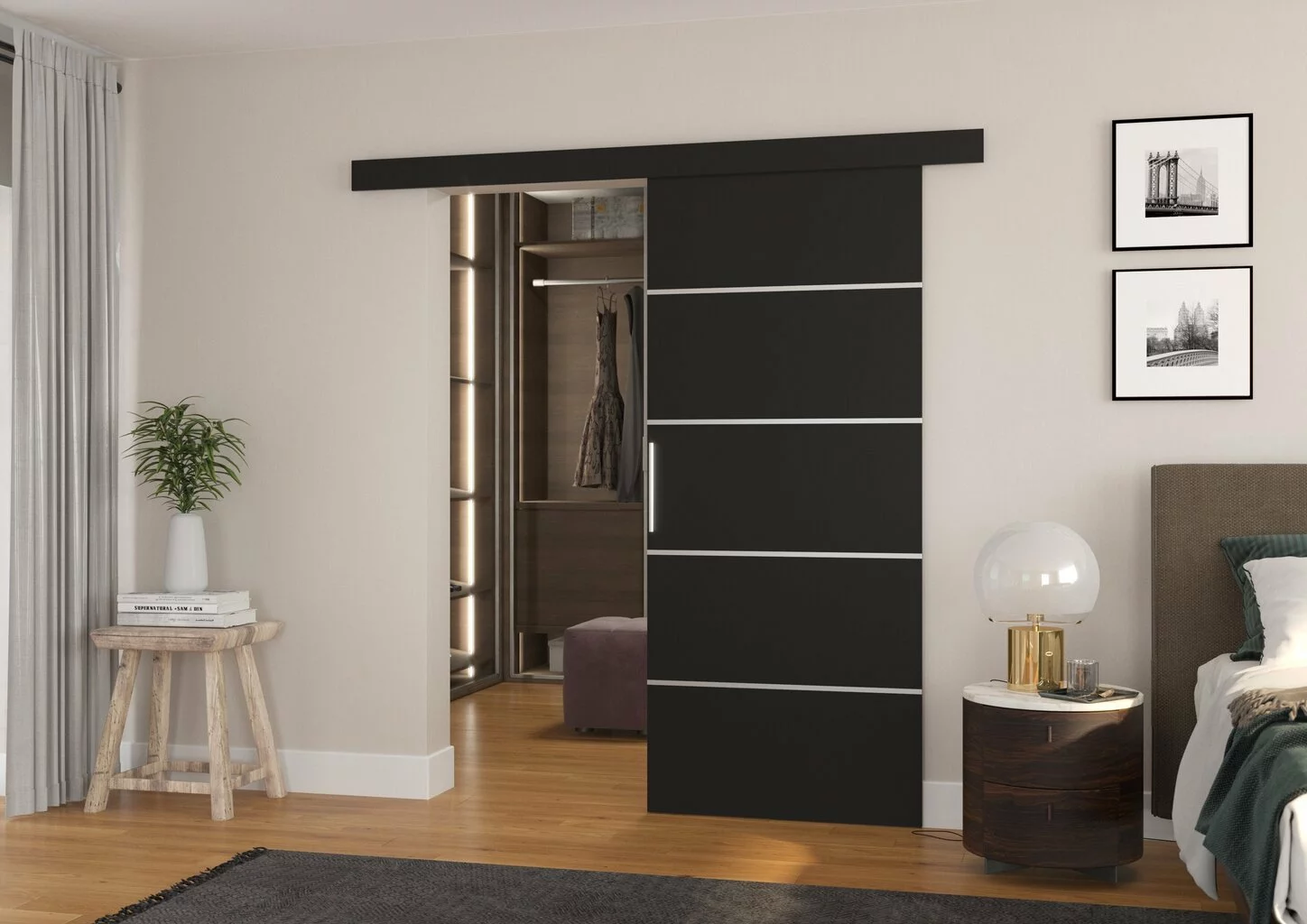 Liukuovet viimeistelevät kotisi sisustuksen. Muotoilua täydentävät tyylikkäät hopeiset asusteet, jotka antavat sisustukseen eleganssia. Mukavuus ja tyyli yhdessä.